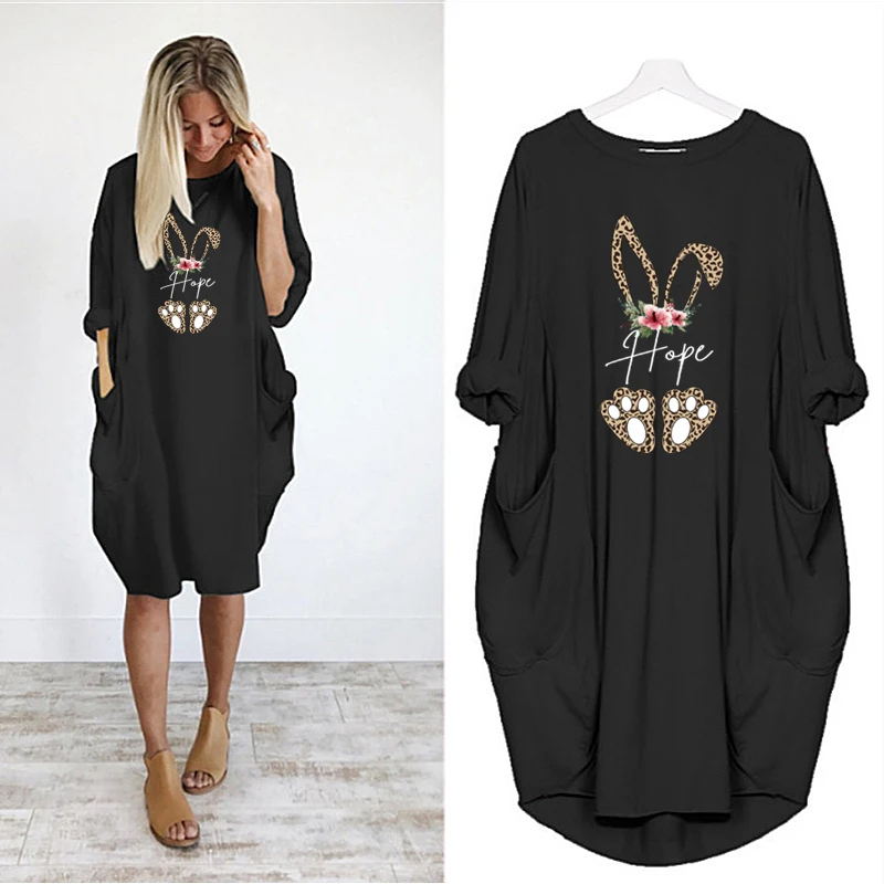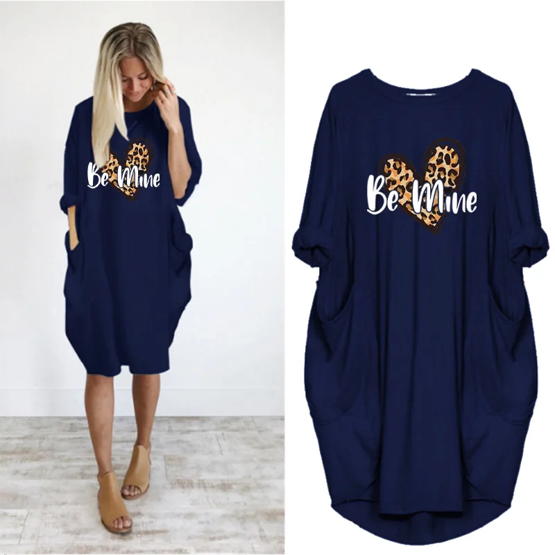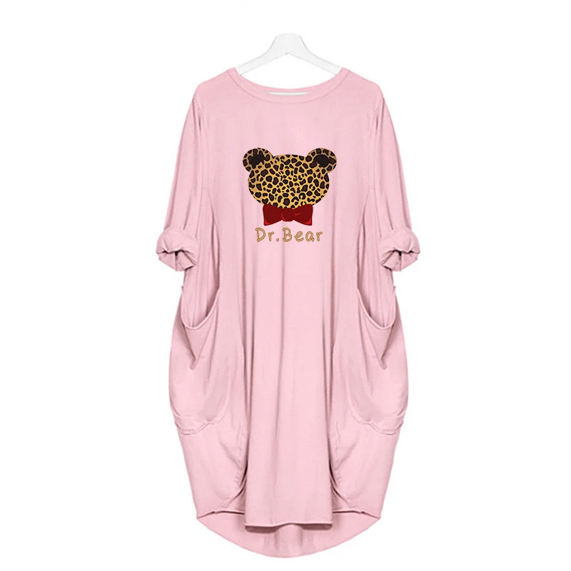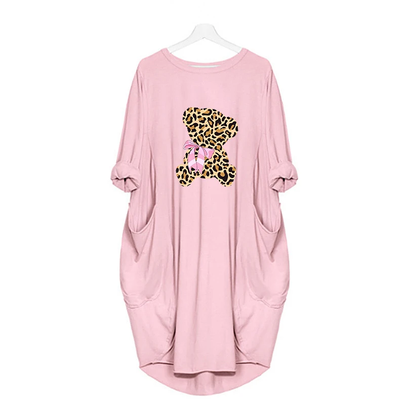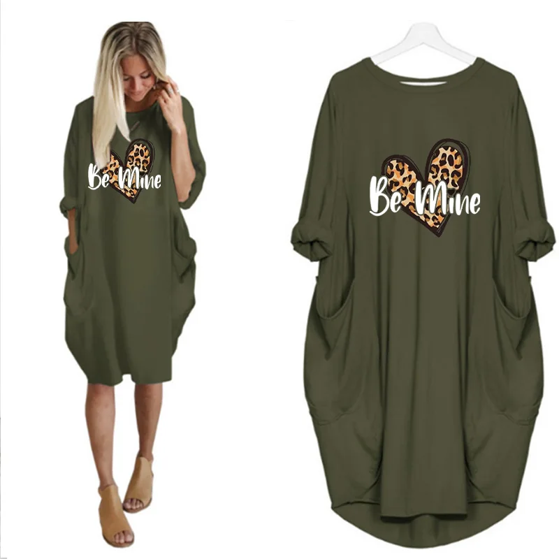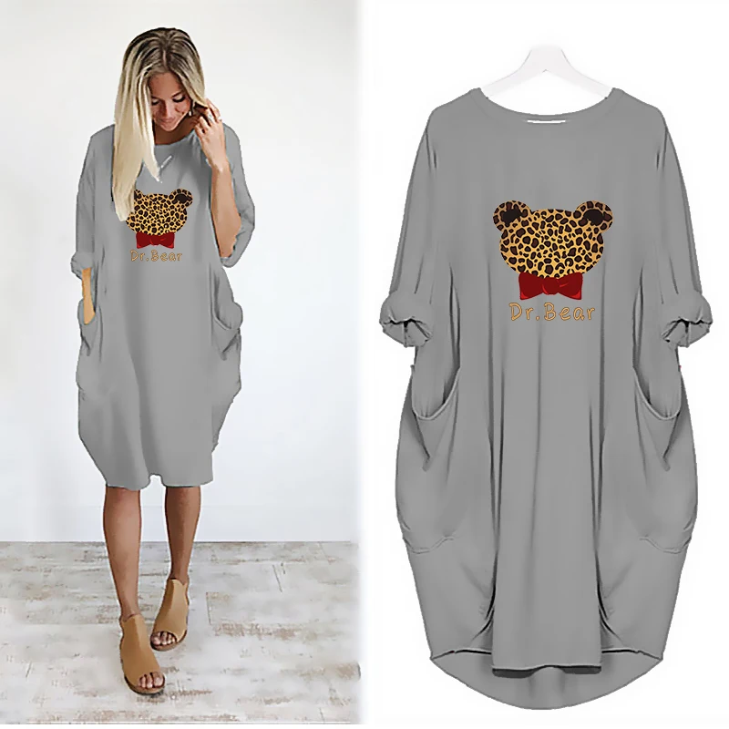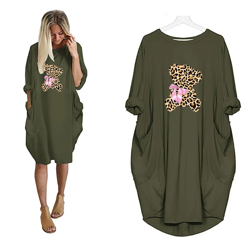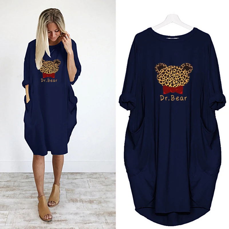 Женское платье с длинным рукавом, леопардовым принтом и круглым вырезом