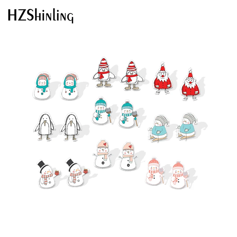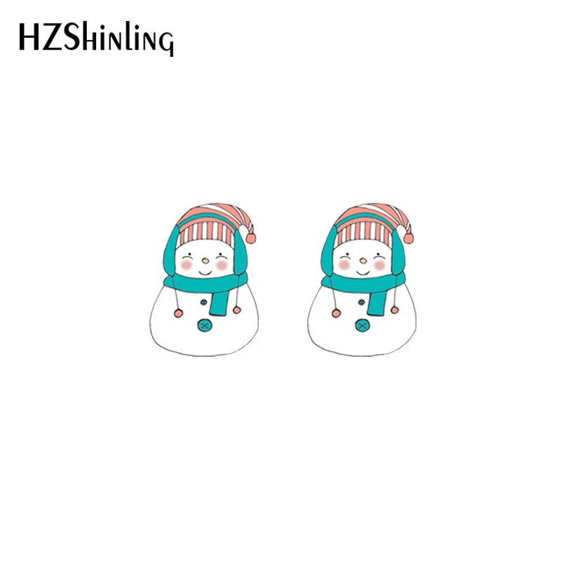Серьги-гвоздики акриловые, в виде снеговика, с эпоксидной смолой, зимние, 2020