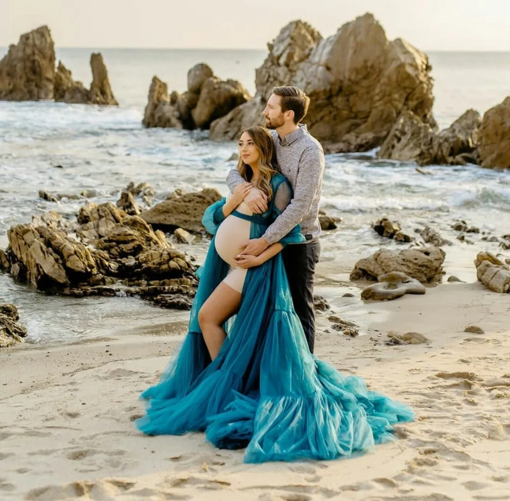Довольно увидеть через тюль, платья для будущих мам, Для женщин халат для фотосессии или Babyshower прозрачные длинным шлейфом Свадебные халат платье для съемки