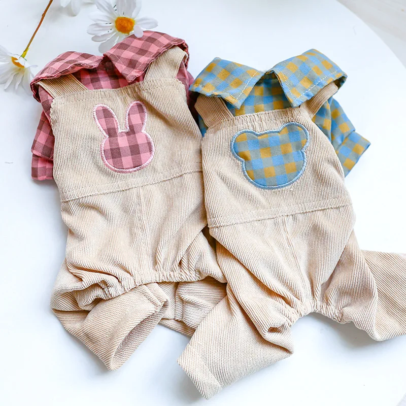 Товары для собак, одежда для домашних животных на весну и лето, одежда для собак с четырьмя ногами, одежда для собак в клетку с принтом кролика