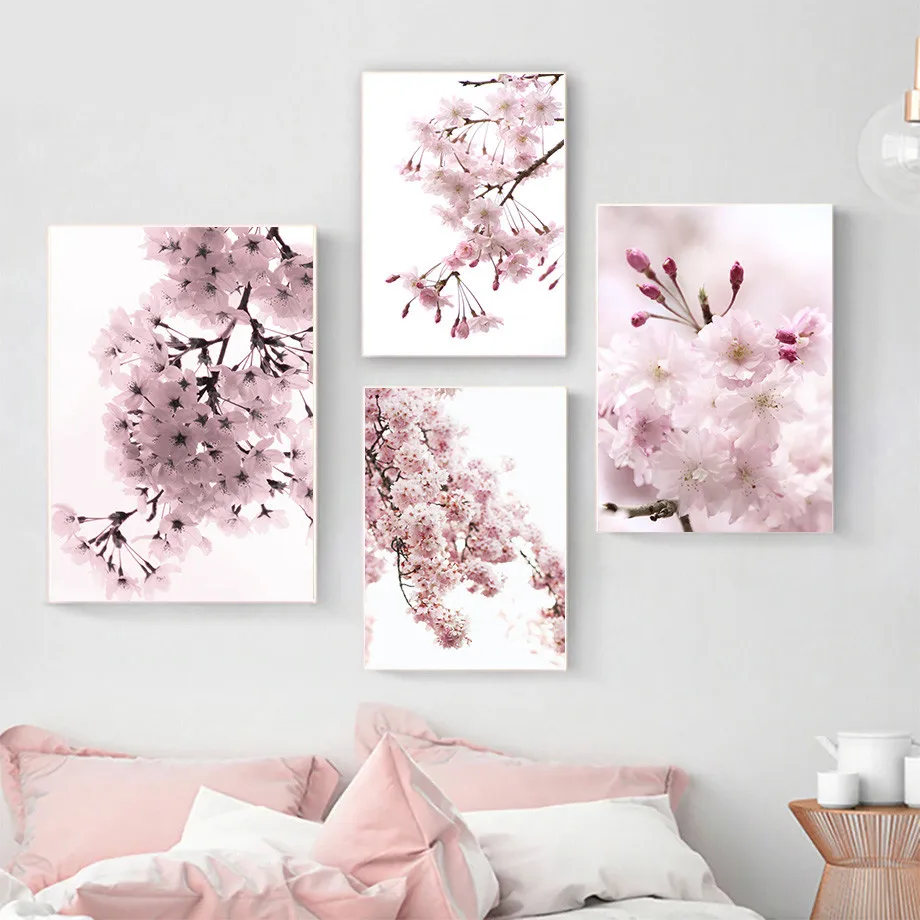 Скандинавские постеры с цитатами и цветами вишни, печатные настенные картины на холсте, настенные картины для гостиной, домашний декор
