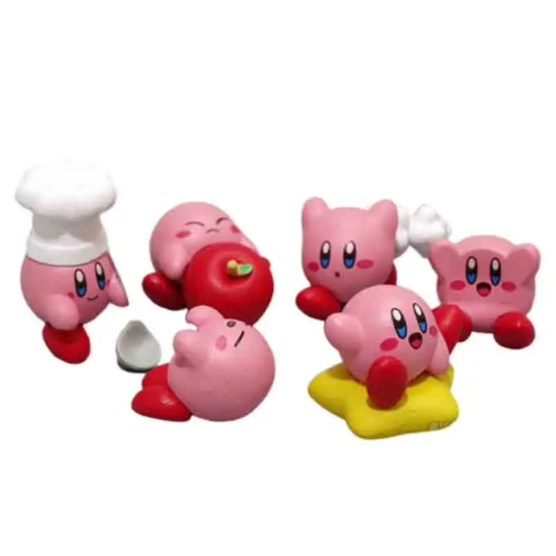 6 шт.компл. 5 см Kawali Star Kirby Chef с ложкой, милые брелоки Apple, декоративные куклы, мини Экшн-фигурки, коллекционные модели, детские игрушки