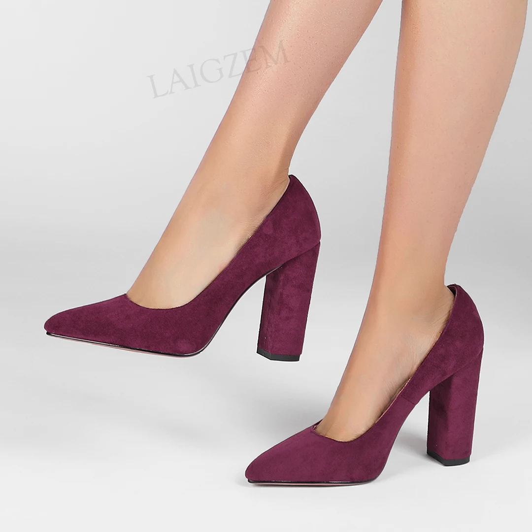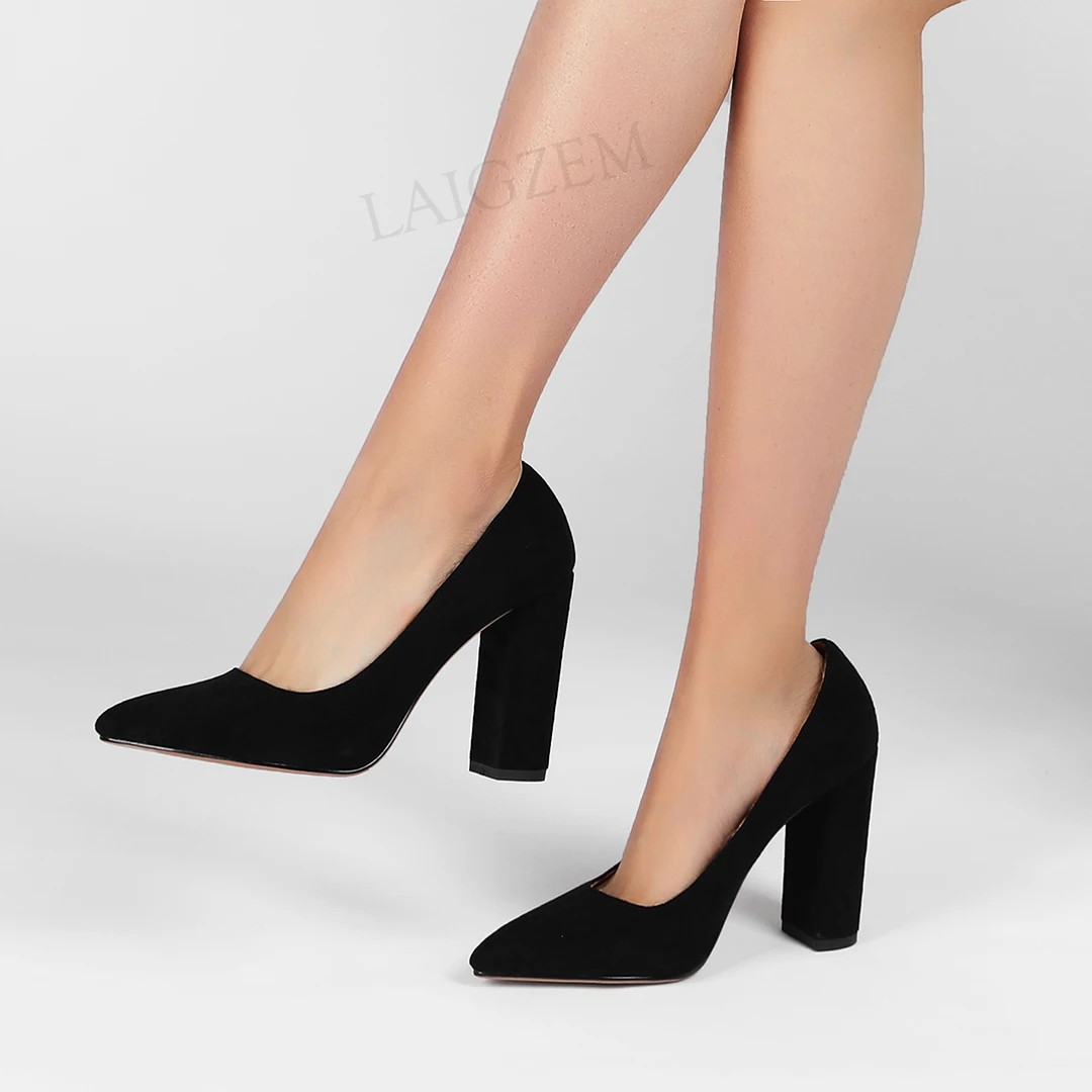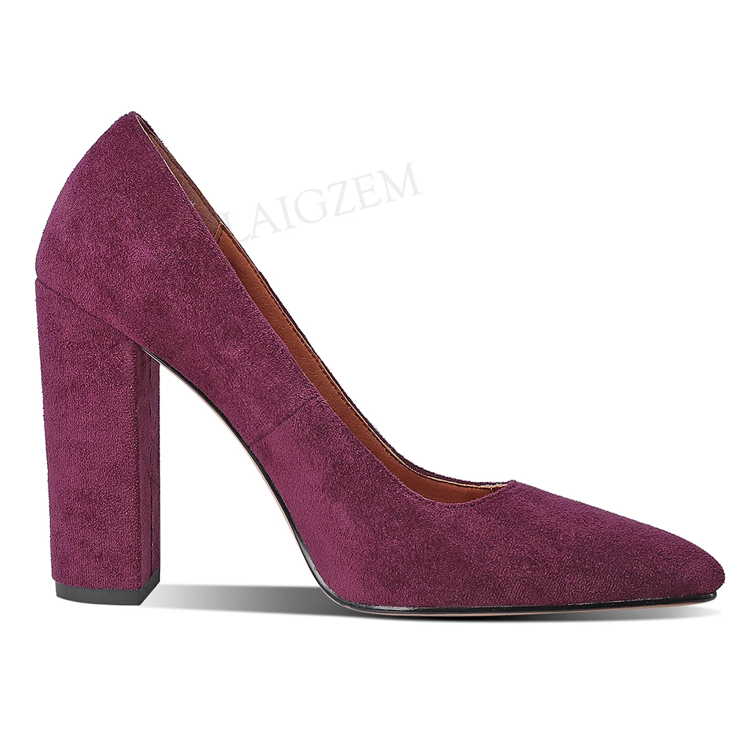 Женские туфли-лодочки из искусственной замши без застежки на толстом высоком каблуке ручной работы; Офисные женские сандалии; Женская обувь; Большие размеры 40, 42, 43