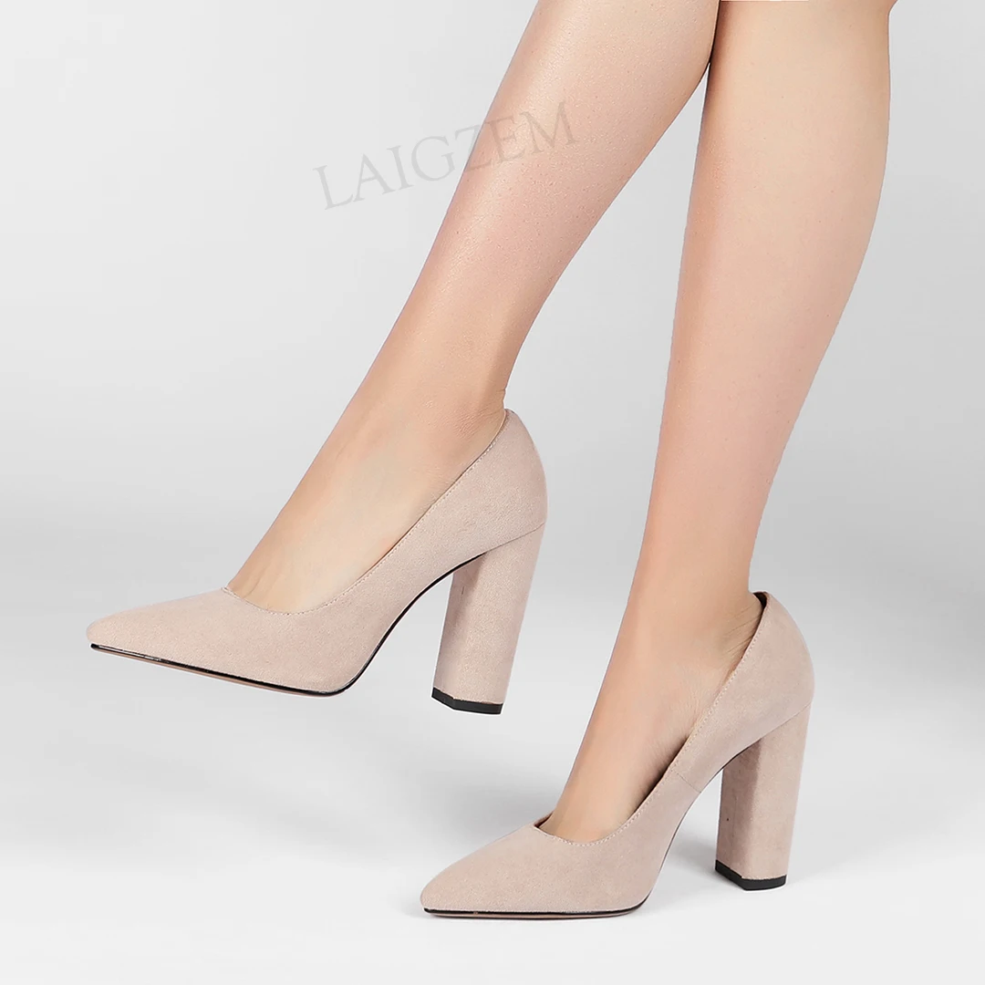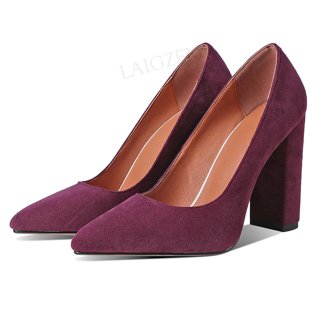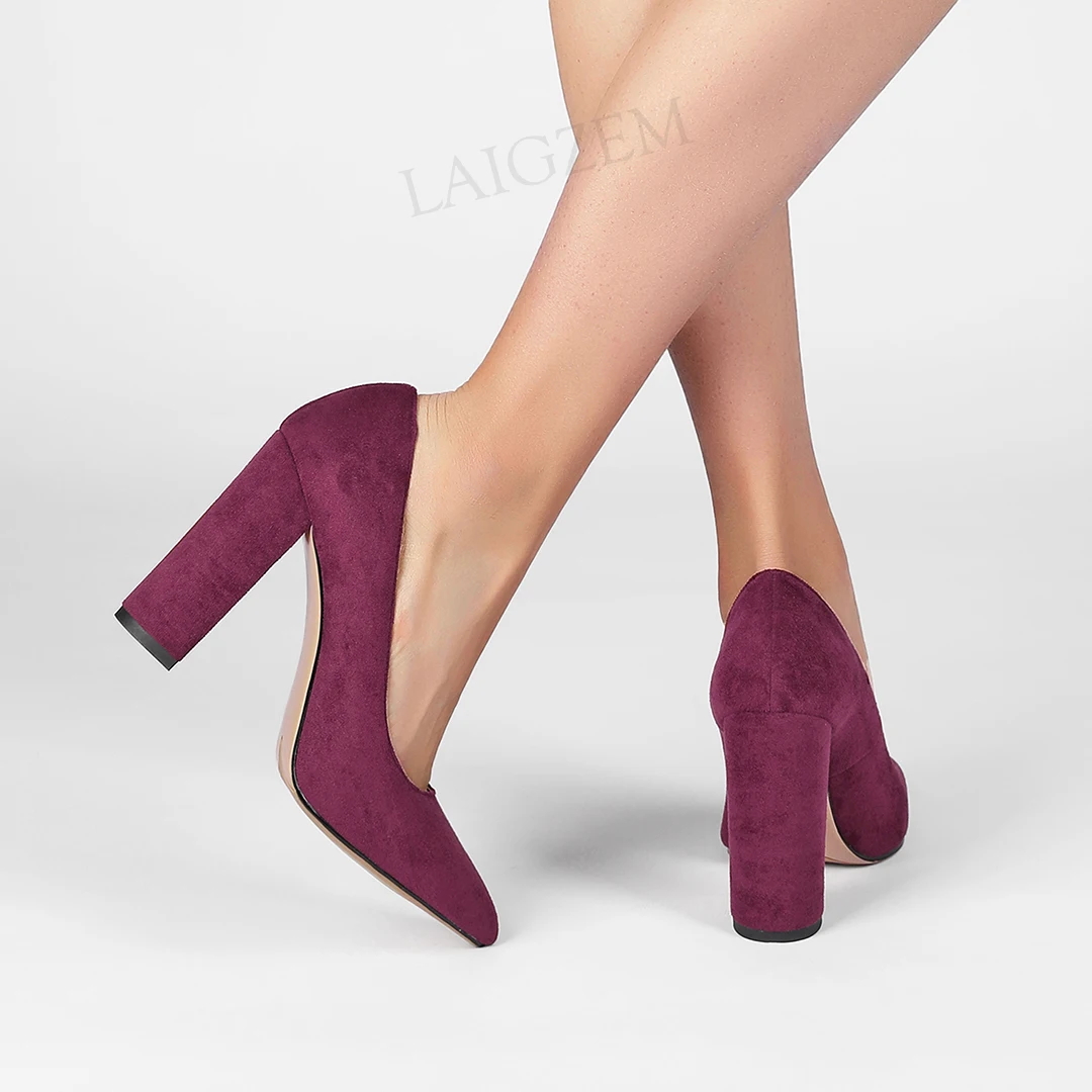 Женские туфли-лодочки из искусственной замши без застежки на толстом высоком каблуке ручной работы; Офисные женские сандалии; Женская обувь; Большие размеры 40, 42, 43