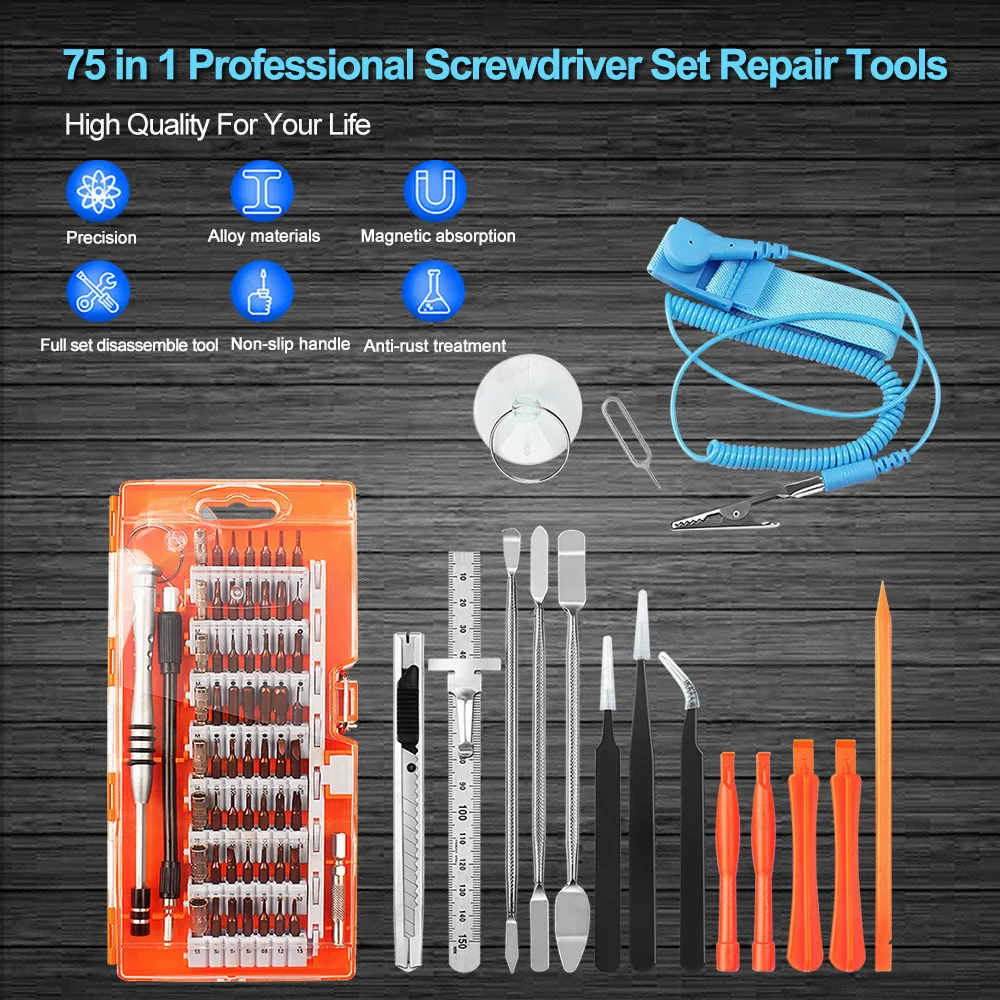 76 в 1 набор профессиональных инструментов для ремонта с антистатическим ковриком Набор прецизионных отверток для ремонта компьютера телефона ПК игровой консоли