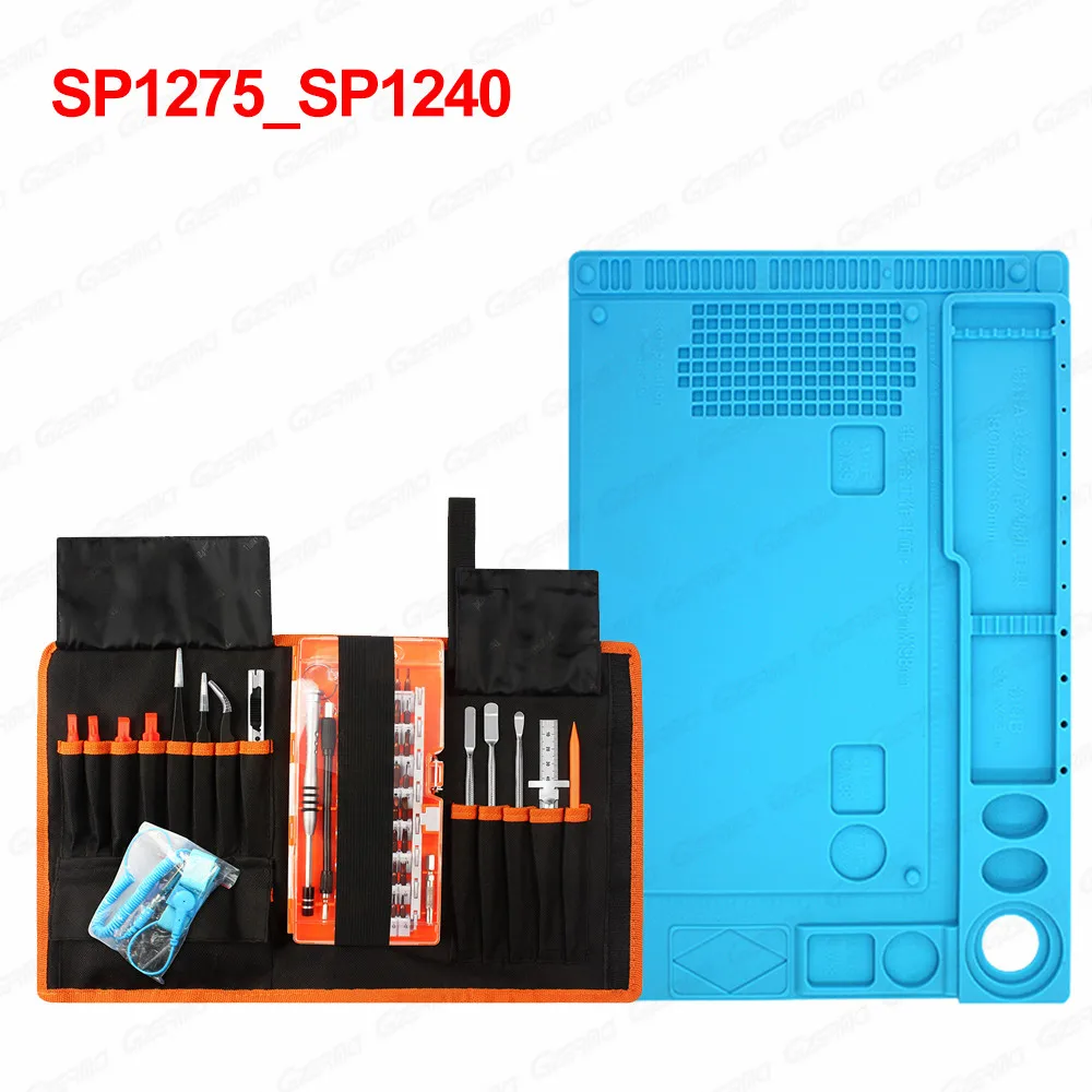 Набор инструментов 76 в 1 детали:(Набор инструментов для отвертки 75 в 1 + коврик для ремонта 1 шт.)● 1х нож-Оснастка лезвия дизайн обеспечивает острый край каждый раз. Блокировка лезвия регулировка означает, что лезвие остается там, где вы имеете в виду.● 1x антистатический ремешок для запястья-Защита цепей от статического электричества.● 3x ESD пинцет-Точный Пинцет для обработки небольших проводов, винтов и достижения там, где пальцы не могут.● 5x пластиковые инструменты для вскрытия-мягкие пластиковые инструменты для уборки.● 3х металлический двусторонний шпулер-для более мощного подавления, соскабливания, зондирования и подтягивания● 1 металлическая линейка-облегчает измерение деталей!● 1 присоска-для удаления экрана.● 1x эжектор sim-карты-легко открывать/удалять/извлекать sim-карту.● 1 водонепроницаемая сумка Oxford-удобное хранение.● 1x60 в 1 Набор прецизионных бит включает:1 х 1/4 ''до 4 мм адаптер драйвера1 х гибкий удлинитель вала-змея в труднодоступных местах.1 х удлинитель твердого вала-удваивается в качестве Т-образной ручки для дополнительного крутящего момента1 х алюминиевая ручка водителя56 x бит следующих размеров:○Щелевые-1,0, 1,5, 2,0, 2,5, 3,0, 3,5, 4,0 мм○Драйвер гайки-M2.5, M3.0, M3.5, M4.0, M4.5, M5.0 M5.5○Hex-0,7, 0,9, 1,3, 1,5, 2,0, 2,5, 3,0, 4,0, 4,5, 5,0, 6,0 мм○Phillips-1,0, 1,5, 2,0, 2,5, 3,5 мм○Torx - T2 ,T3, T4, T5, T6, T7○Torx Security - T8, T9, T10, T15, T20○Pentalobe-0,8, 1,2, 1,5 мм○ Tri-point - Y0.6, Y2.0, Y3.0○Треугольник-2,0, 2,3 мм○Square - SQ0, SQ1, SQ2○Бит извлечения SIM-0,8 мм○Гаечный ключ (U тип)-2,6, 3,0 мм· PH2【 Высококачественная теплоизоляционная подкладка: 1 шт.Высокая термостойкость 500 ° C.Расположение севарального отверстия для крепежных винтов, микросхем и небольших деталей.Сделайте ремонт легким.Хороший партнер для пистолета горячего воздуха.2 размера:SP1239:336*226 мм (13,23x8,90 дюйма)SP1240:413*282 мм (16,25x11,10 дюйма)Примечание:Пожалуйста, проверьте выбор товара, который вам нужен!