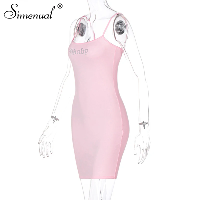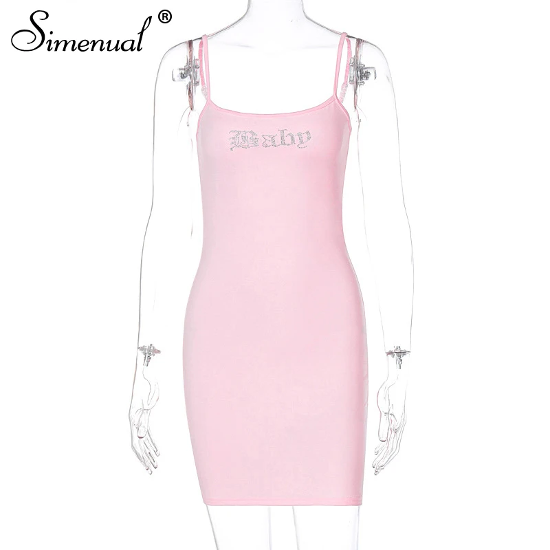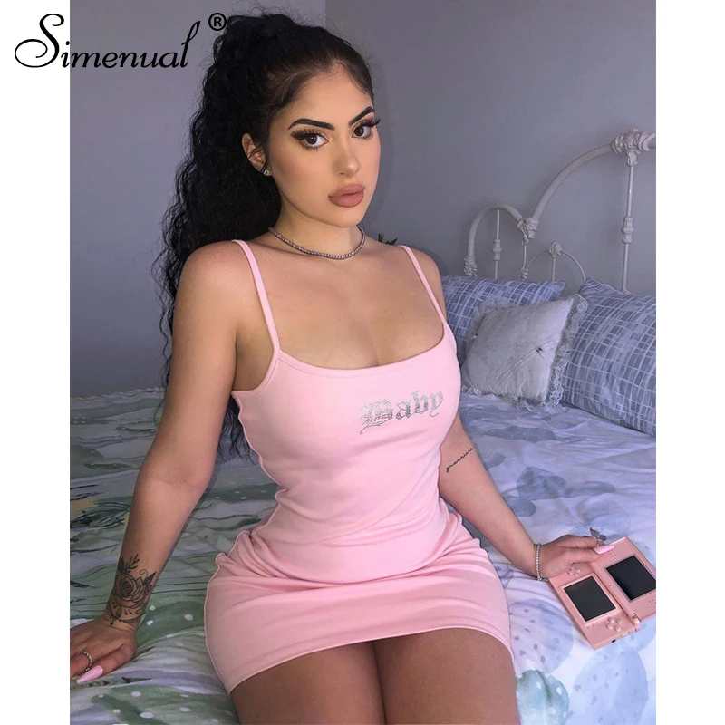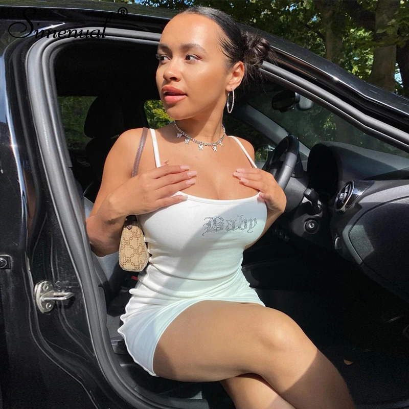 Simenual стразы, наряд на день рождения для женщин, платье для девочки, сексуальное, лето 2021, на бретелях, облегающие, вечерние, Мини платья с надписью, хит продаж