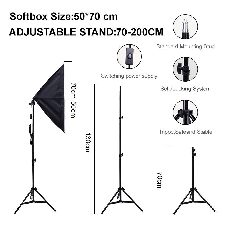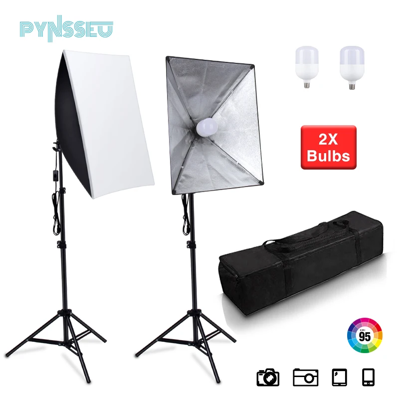 Профессиональный софтбокс PYNSSEU 50x70 см для фотостудии, оборудование светодиодный светодиодной лампой, регулируемая подставка