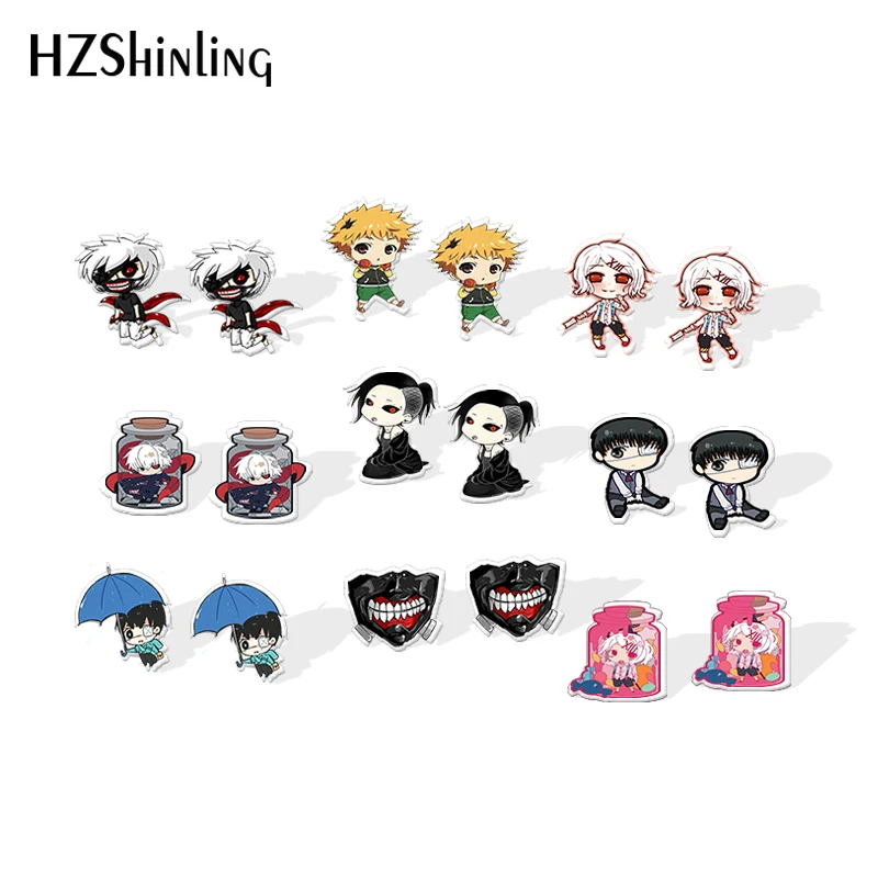 Новинка 2019, серьги Kaneki Ken из Токийского Гуля, модные серьги, аниме, эпоксидные акриловые серьги-гвоздики