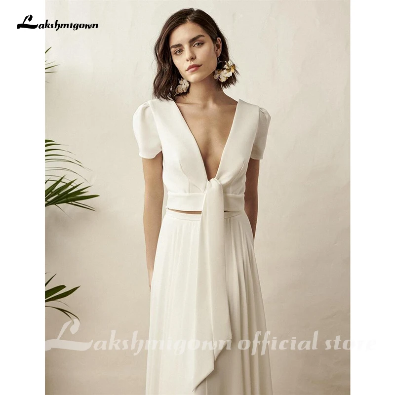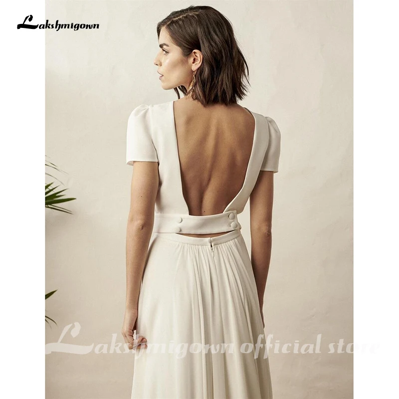 Женское свадебное платье из двух предметов, простое пляжное платье с коротким рукавом и открытой спиной
