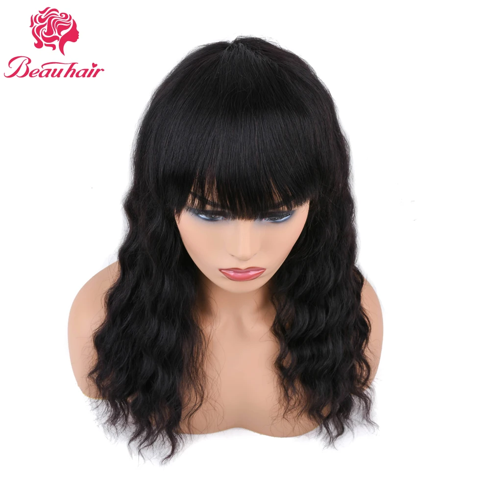Beauhair бразильские человеческие волосы, парик с глубокой волной, Боб Wg с челкой, полностью автоматический парик, свободные волнистые волосы без кружева для черных женщин, Remy