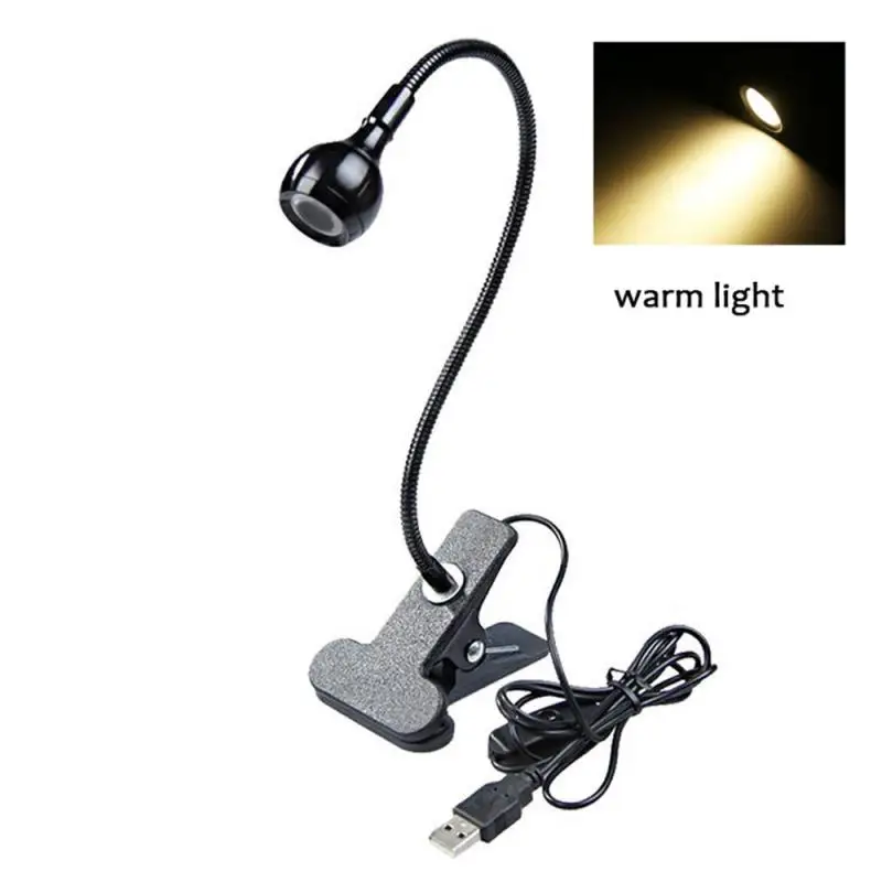 Настольная Светодиодная лампа 3 Вт, черногосеребристого цвета, настольная лампа с USB-разъемом, светильник с зажимом, гибкая кровать, ночной Светильник для чтения, для учебы, офиса, работы