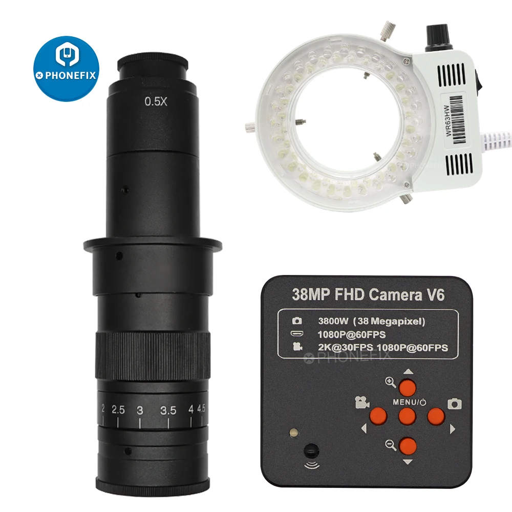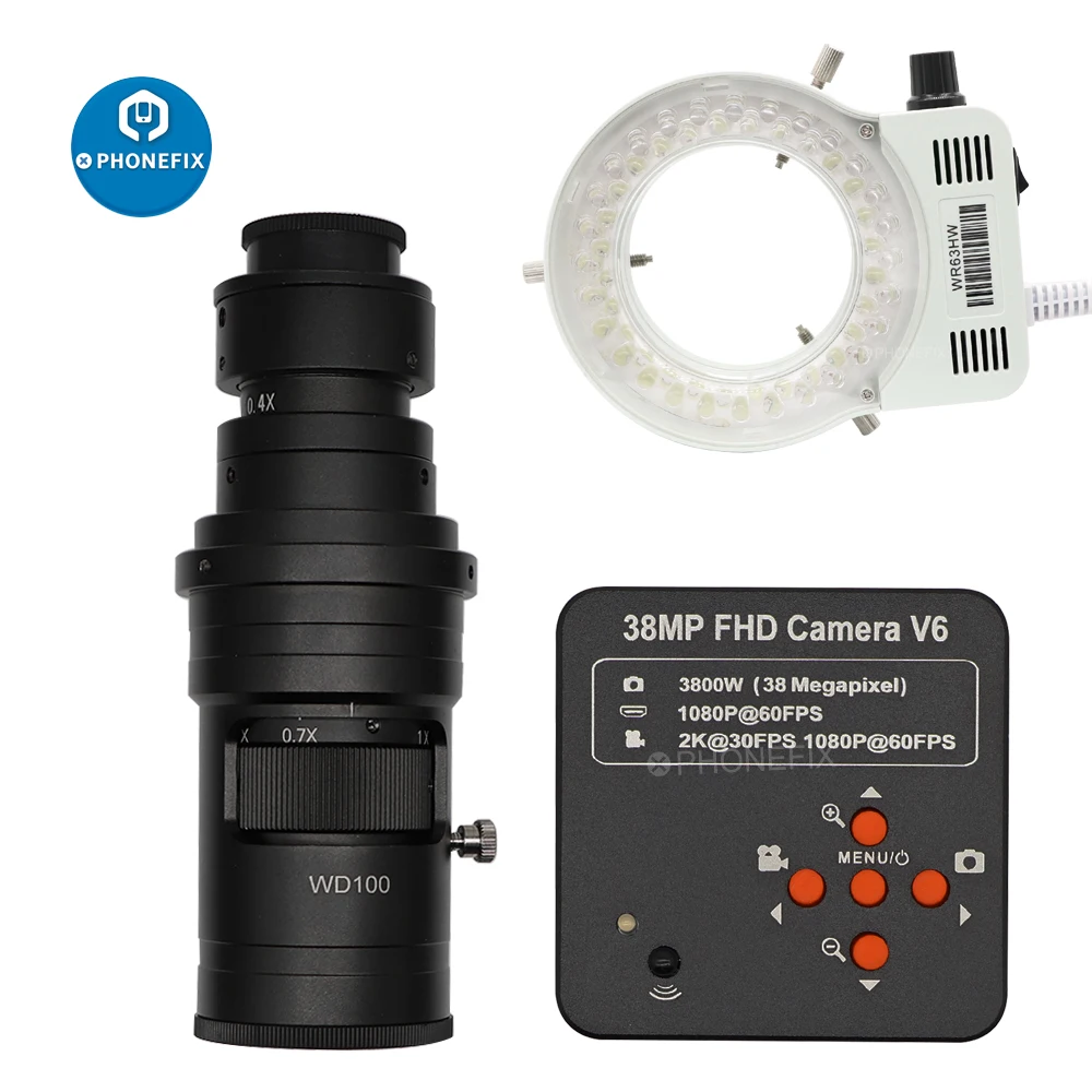 38MP 1080P 60FPS промышленный видео микроскоп камера TF хранение + зум C крепление объектива 56 светодиодный кольцевой светильник для ремонта чипа телефона пайки