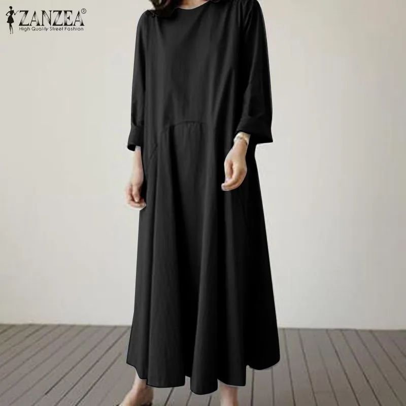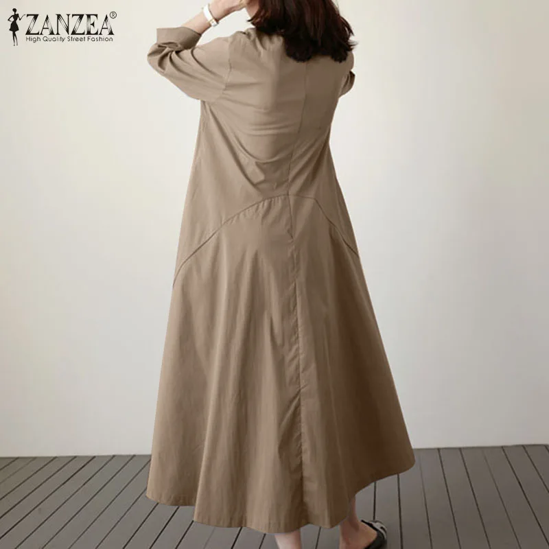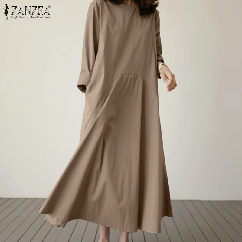 ZANZEA 2021 осеннее длинное платье макси с длинным рукавом, длинное...