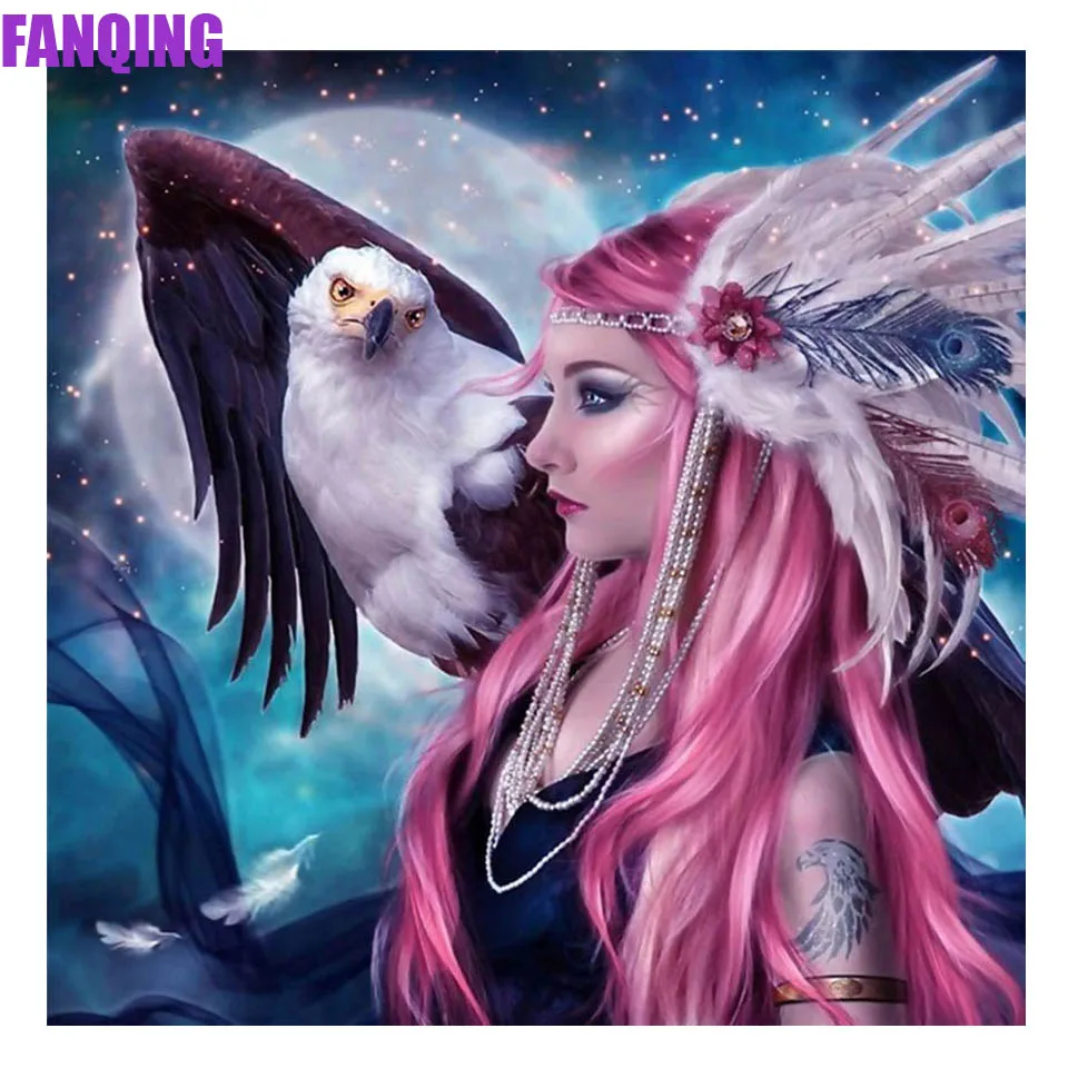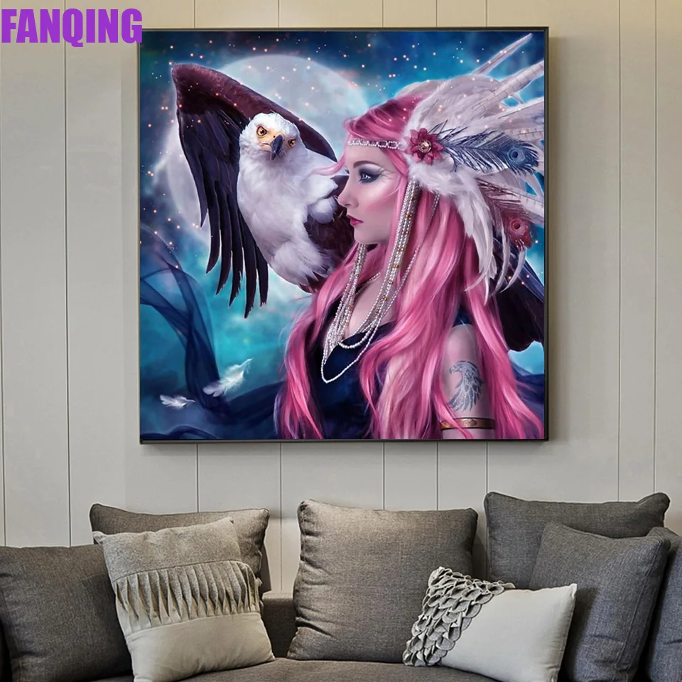 5d круглая квадратная Diy Алмазная картина индийская красавица Девушка с орлом крестиком Мозаика Стразы для украшения дома вышивка