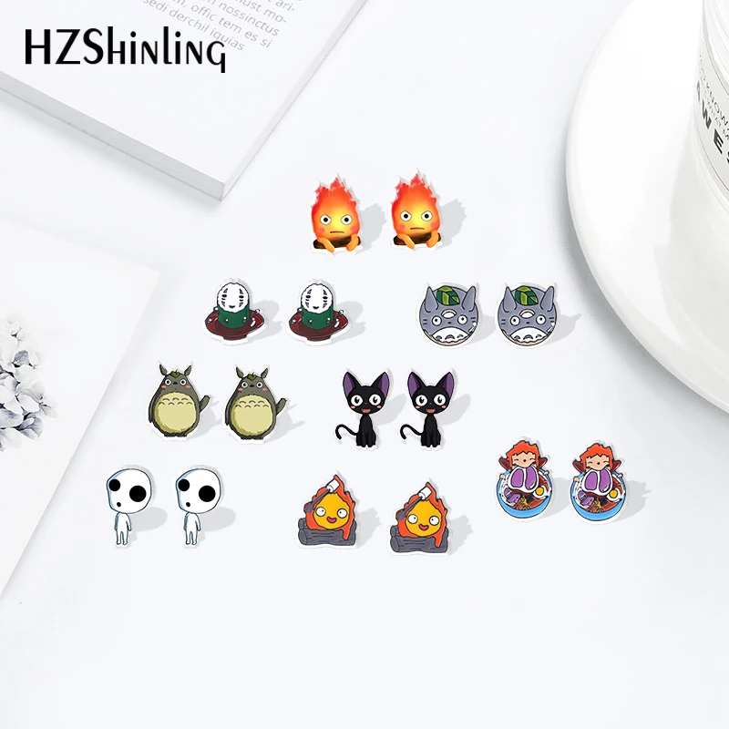 Серьги-гвоздики из акриловой эпоксидной смолы, с мультяшным аниме-р...