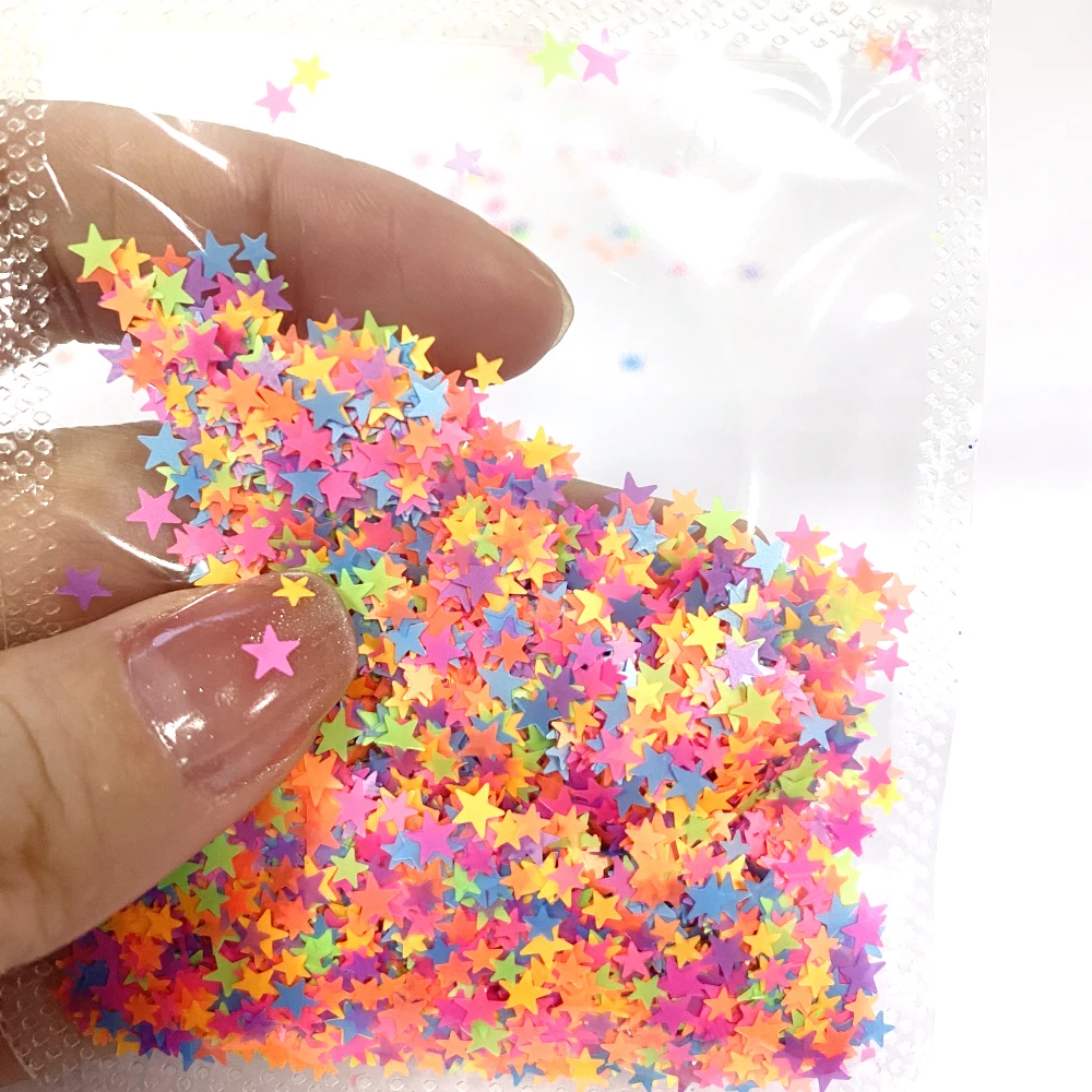 Блестки для ногтей, 2 г, флуоресцентные, в форме звезды, тонкие хлопья, разные размеры, украшения для маникюра и ногтевого дизайна, аксессуары сделай сам, новинка 2021