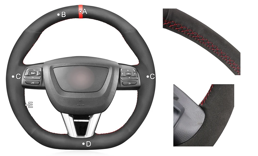Сшитый вручную черный замшевый красный маркер фотография для Seat L...