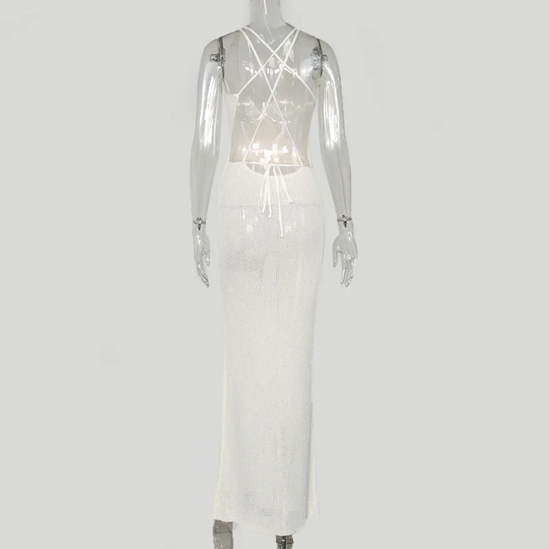 Женское вязаное платье-макси NewAsia Garden, пляжное платье белого ...