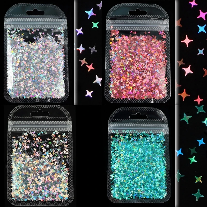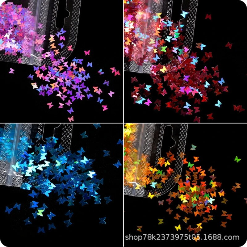 12 Цветов голографический блестящий для ногтей хлопья блестящие туфли-лодочки на устойчивом эпоксидной смолы фестиваль Коренастый звезда в виде бабочек, смешанные цвета, с блестками 2 гPer