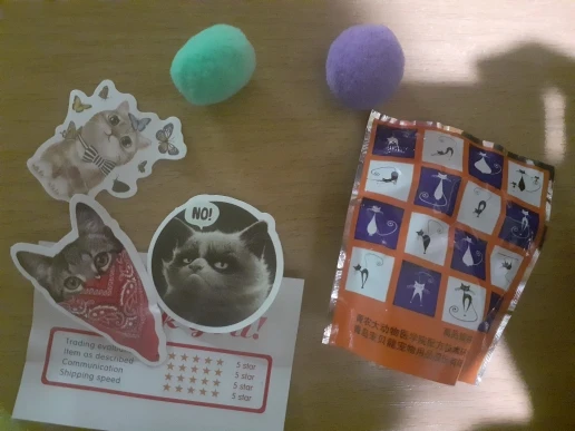Долго шло. Продавец положил кучу подарков: два мячика и три наклейки. Спасибо!