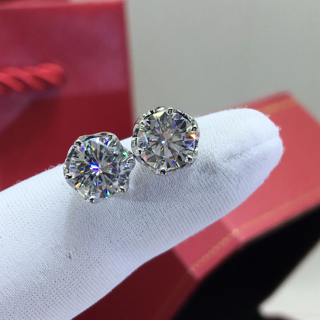 Серьги-гвоздики с муассанитами, цвет D, 2 карата