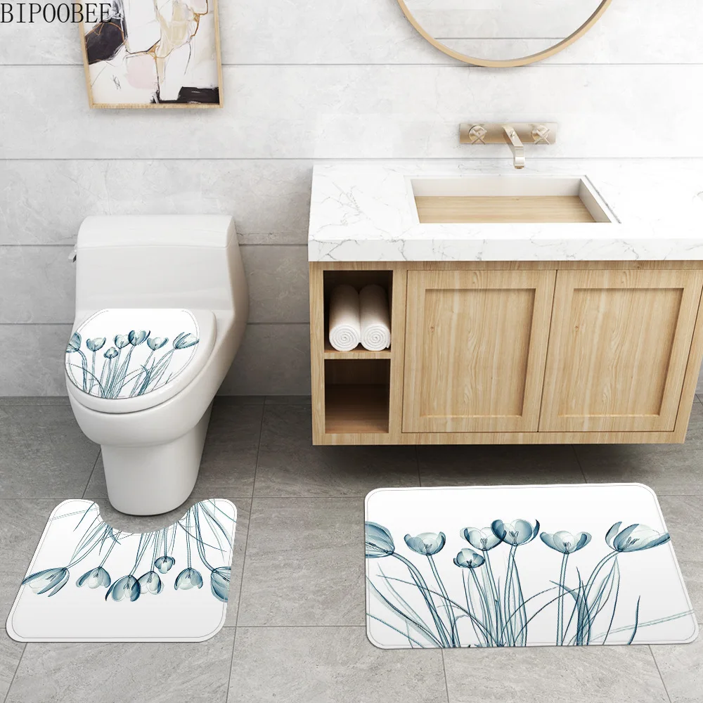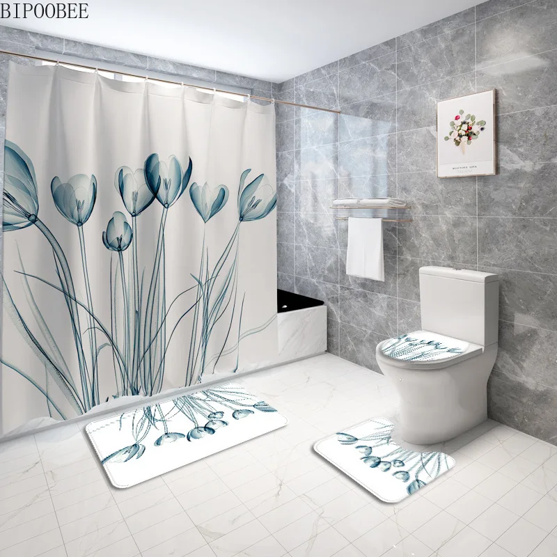 Набор занавесок для душа с принтом тюльпанов, красивые цветы, крышка для унитаза, противоскользящий ковер, коврики для ванной, водонепроницаемые занавески для ванной s