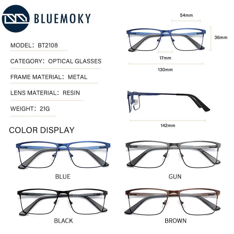 Мужская квадратная оправа для очков BLUEMOKY, Ультралегкая оправа из сплава для очков для коррекции близорукости