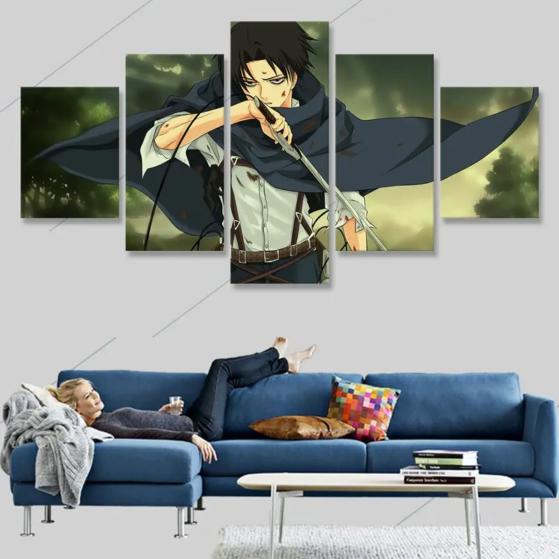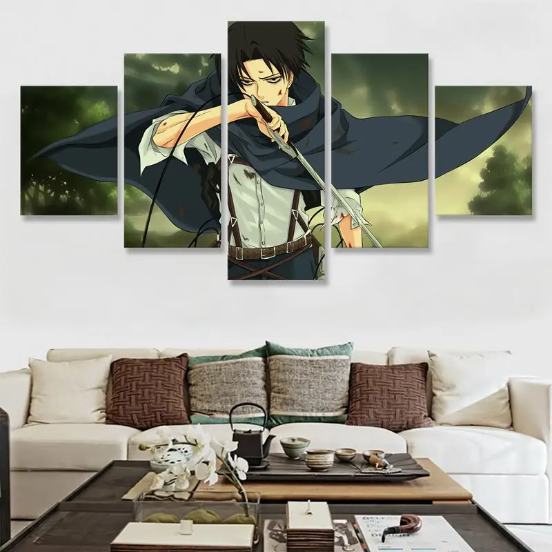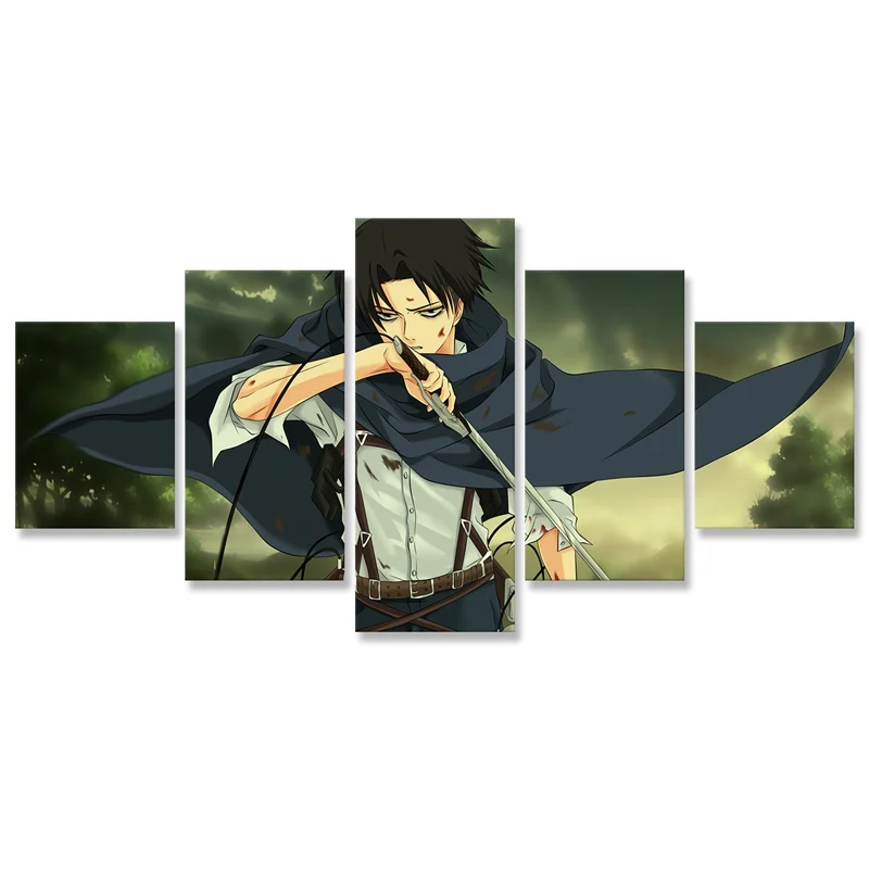 Настенное искусство атака на Титанов, холст, картины, 5 комплектов, Модульная картина Леви Акермана, HD принты, плакат, домашний декор, рамка для гостиной