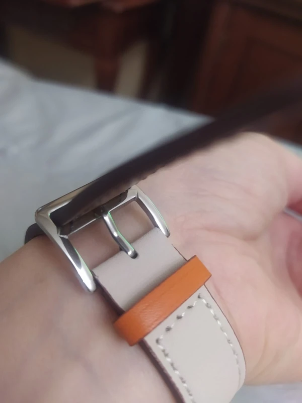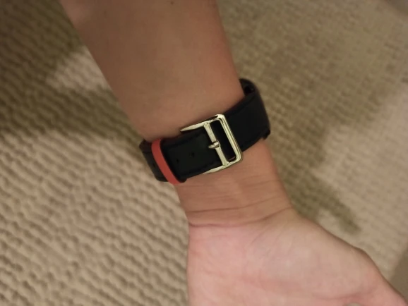Ремешок внешне хороший, но неудачная застёжка. Она торчит, выглядит очень некрасиво. Для чего сделано второе отверстие- непонятно. Пробовала одеть через него, Но тогда язычок короткий не доходит. до дырочек. А так ,носить неудобно и торчит застёжка.((