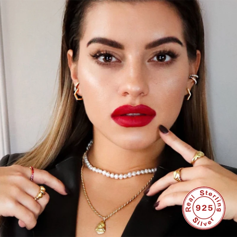 ROXI асимметрия шестиугольник кристаллами серьги в виде колец, для Для женщин ювелирные изделия Ins серьги 925 пробы серебра в виде геометрических фигур пряжки для ушей