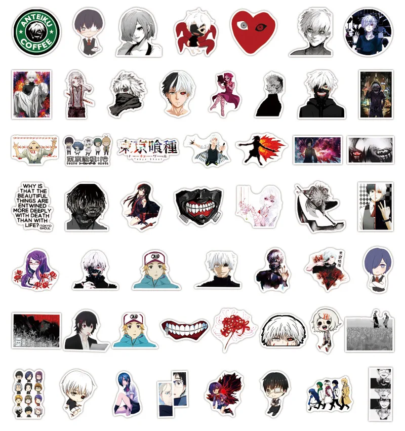 Стикеры с японским аниме Токийский Гуль 1050100 шт.упак., наклейки на холодильник, автомобильный шлем, Подарочная коробка, блокнот для гитары, багажника, велосипеда