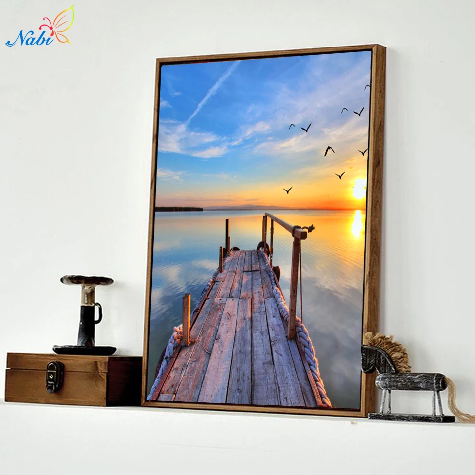 Алмазная 5D картина Nabi с квадратнымикруглыми стразами сделай сам, вышивка крестиком с пейзажем мост на закате, домашний декор, 100%