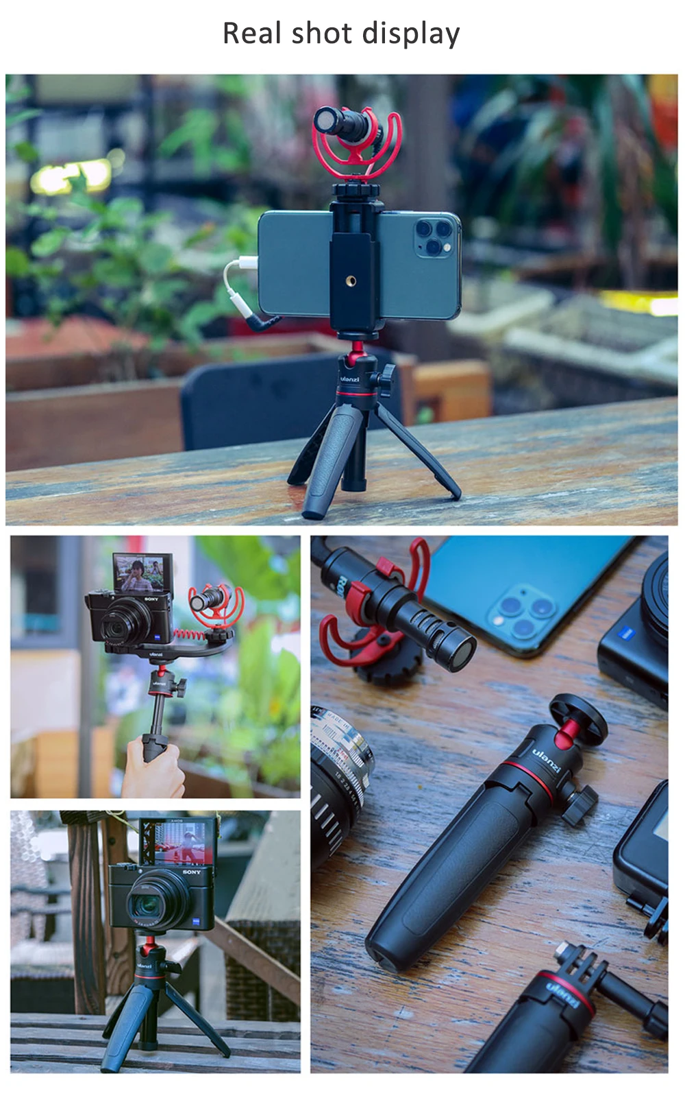 Ulanzi MT-08 телефон Vlog штатив холодным башмаком держатель для телефона держатель для микрофона мини светодиодный светильник DSLR Камера фотография Штатив с держателем