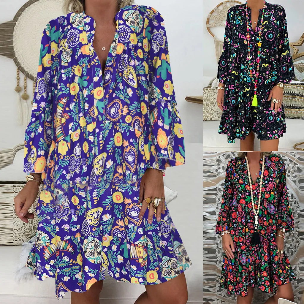Платье женское Винтажное с принтом, свободный сарафан с рукавом три четверти, летний сарафан