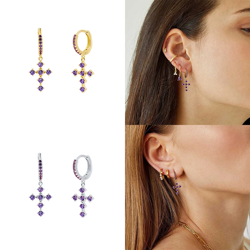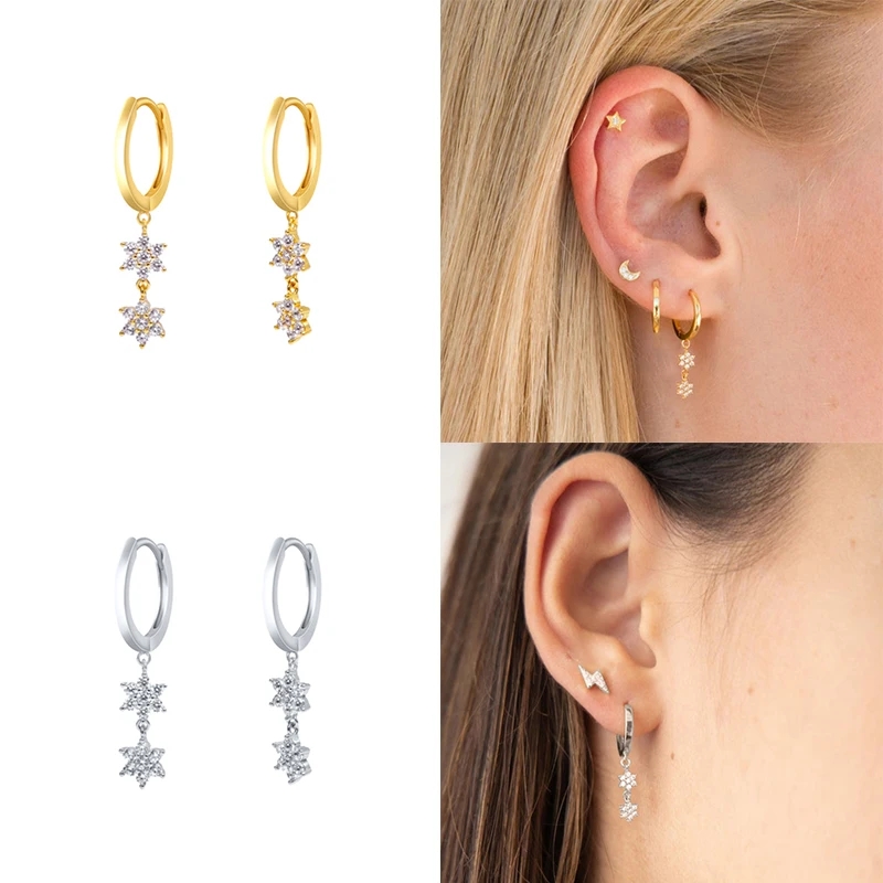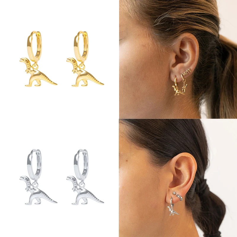 ROXI Снежинка крест кристаллы Серьги Huggie для Для женщин динозавр серьги-кольца из нержавеющей стали, 925 пробы серебро Pendientes