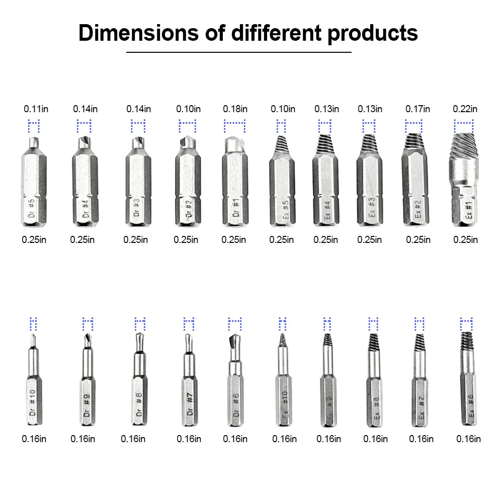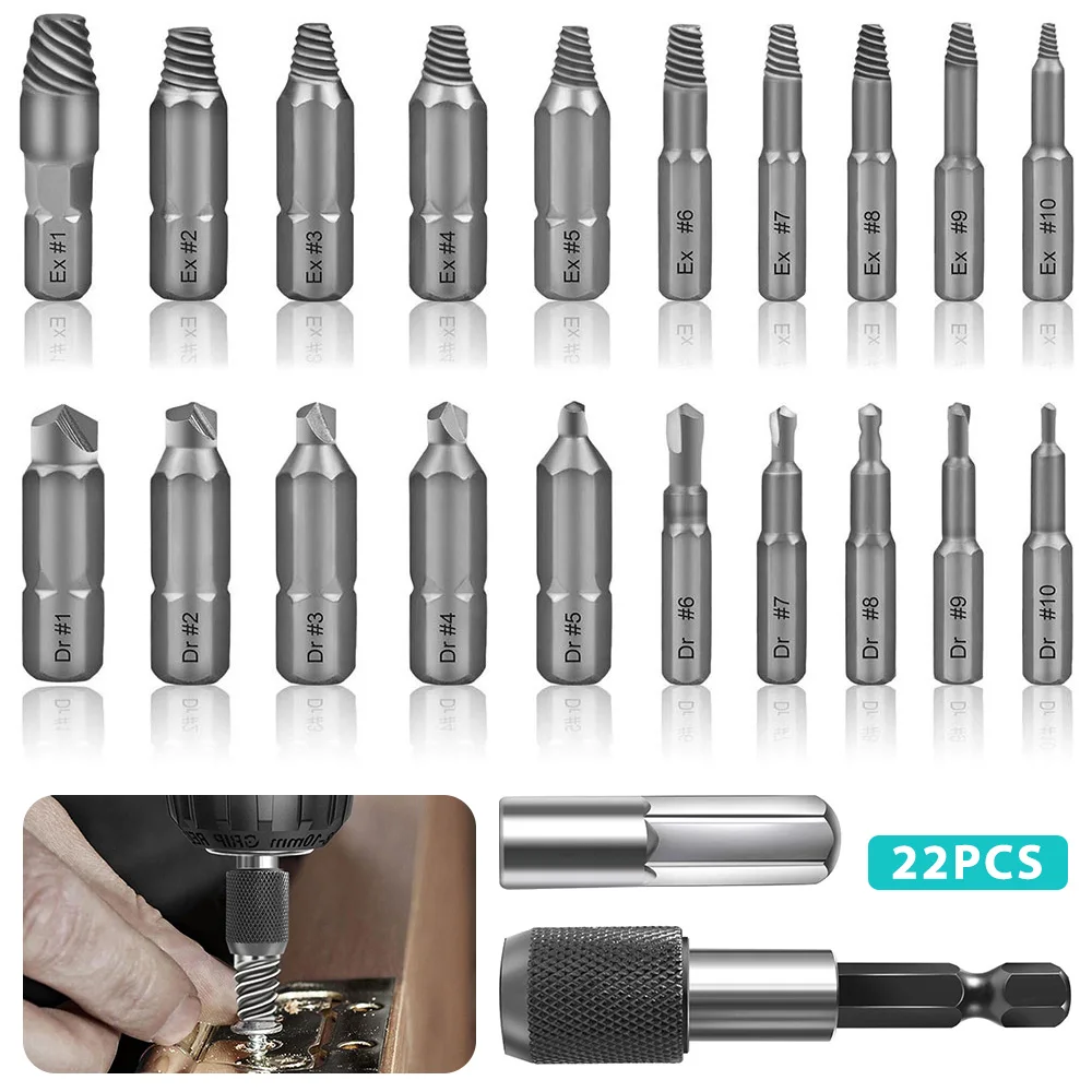 22 шт. поврежденный винт сверло для извлечения экстрактор сверла набор сломанных Скорость из извлекатель для болта болт снос, инструмент для удаления