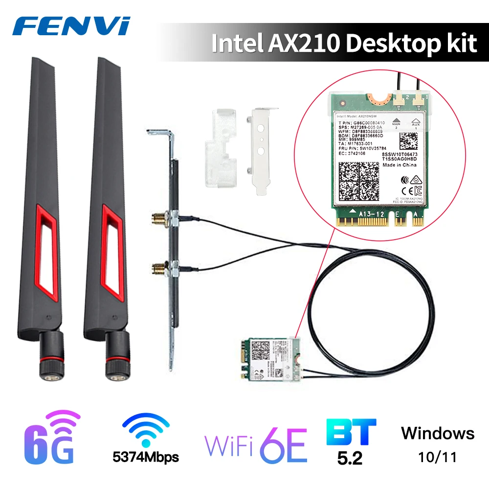 5374 Мбитс, Intel AX210 802.11ax Wi-Fi 6E, настольный комплект, антенна для карты Bluetooth 5,2, 2,4G6 ГГц, адаптер Wi-Fi AX210NGW