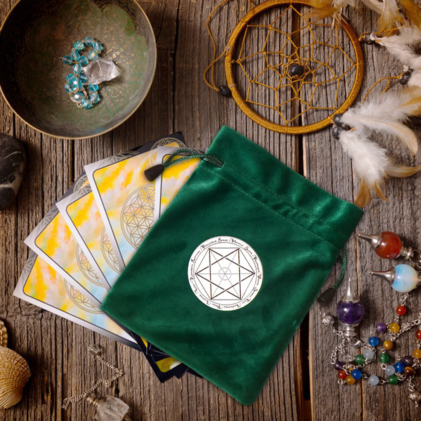 Бархатная сумка для хранения карт и таро в виде пентаграммы