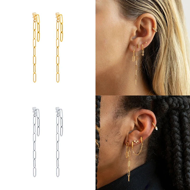 【Тип товара 】: Длинные серьги-гвоздики с цепочкой-скрепкой