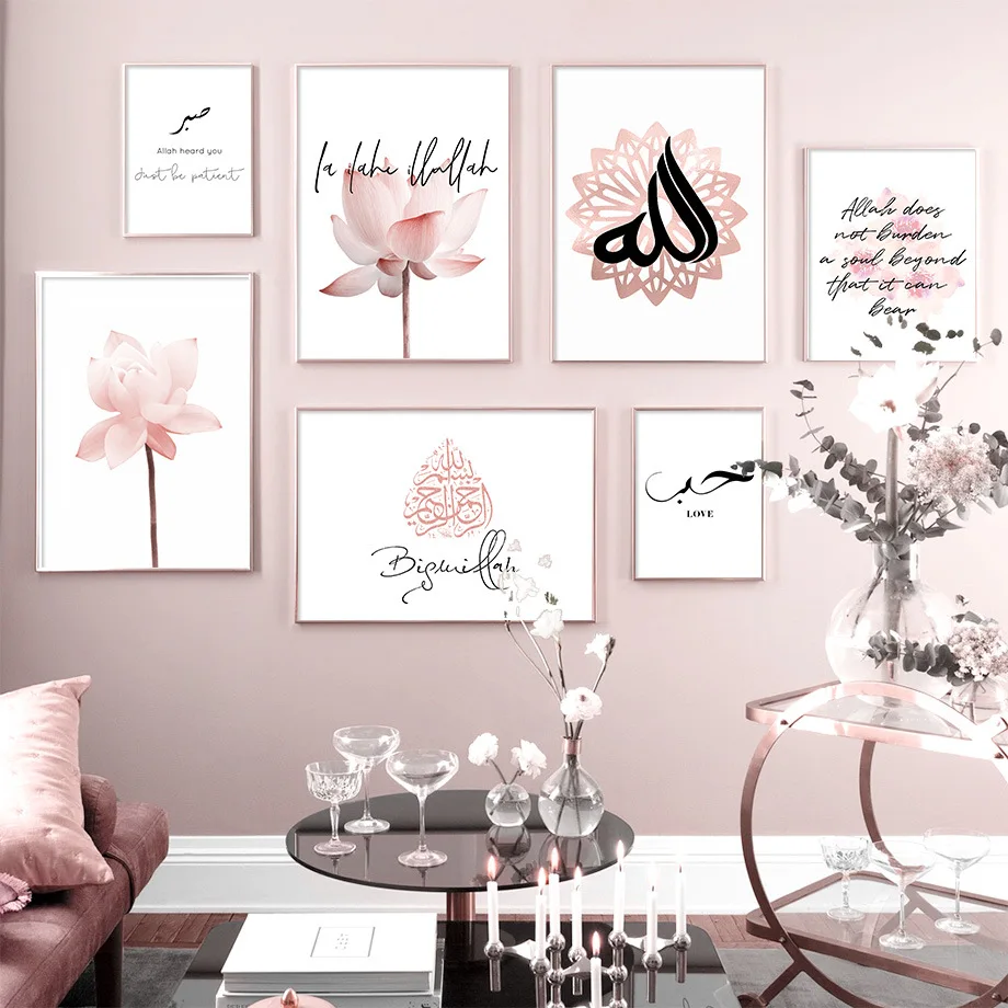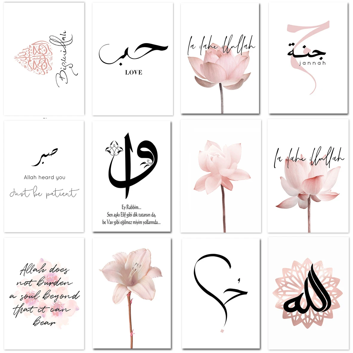 Исламское искусство стены Современная живопись на холсте Афиша Фотографии розового лотоса мусульманских Гостиная эстетическое фото стены украшения номер Декор