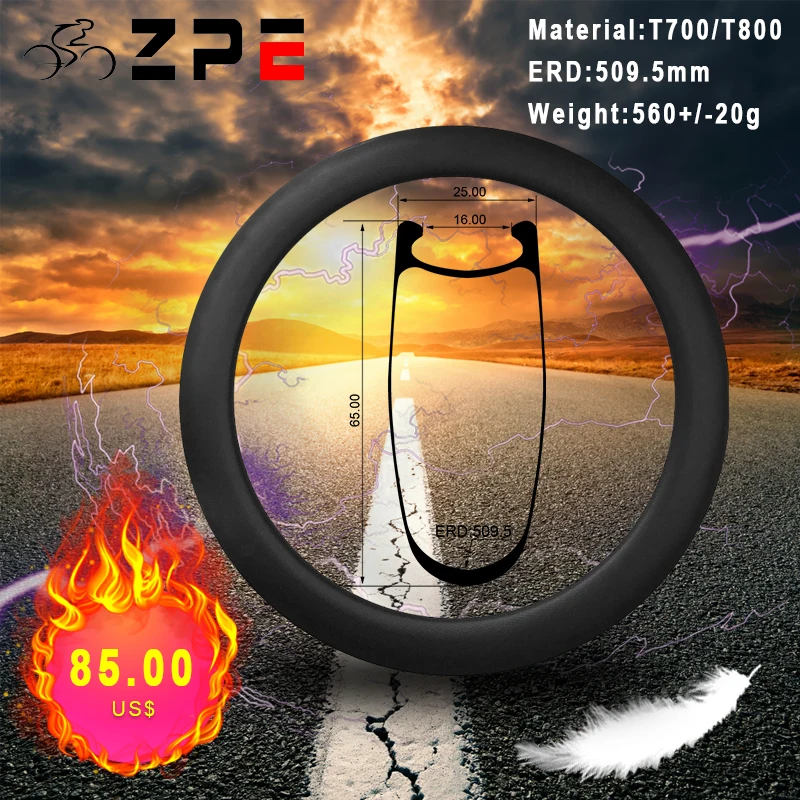 ZPE углеродный обод велосипеда 65 мм углеродное волокно обод велосипеда 700C ширина велосипеда 25 мм полностью углеродный обод