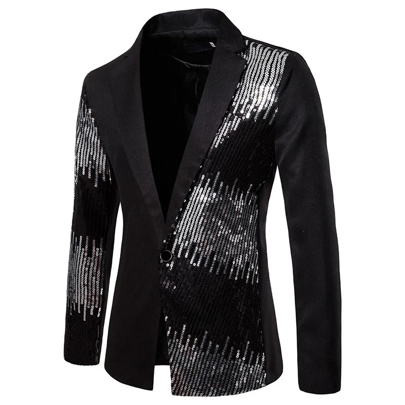 Блестящий черный блестящий пиджак, Мужской приталенный пиджак на одной пуговице, s, для вечеринок, для мужчин, 2021