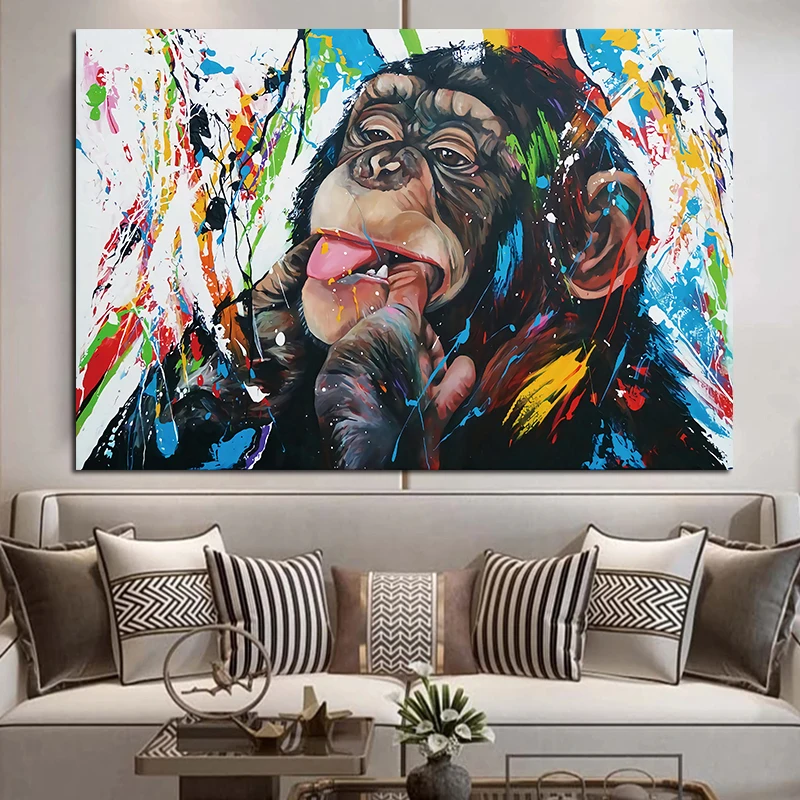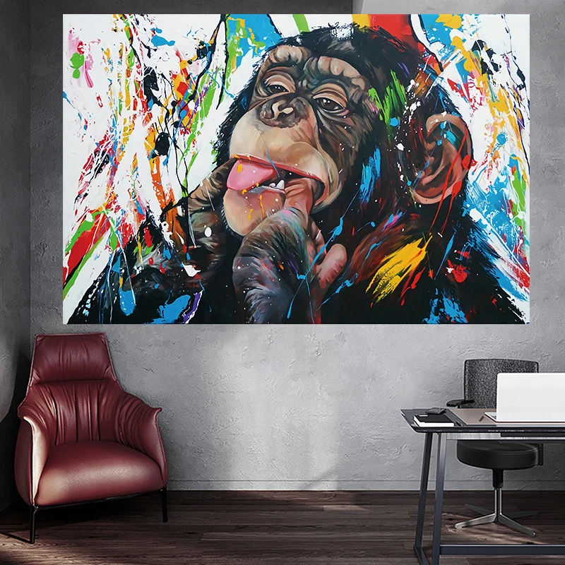 Уличное граффити, картина на стену с изображением забавной обезьяны художественные плакаты и принты, Настенные рисунки с животными, обезьяна, домашний декор, Куадрос