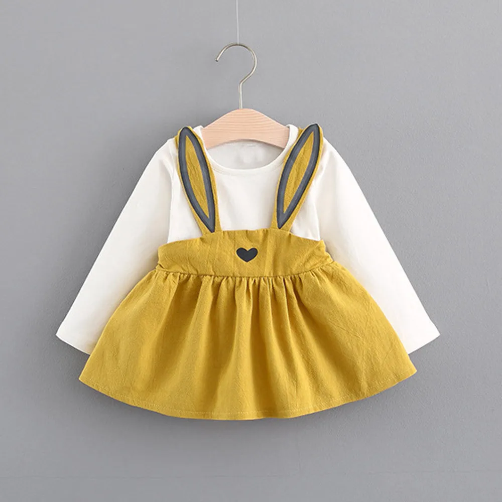 Осеннее платье для новорожденных, младенцев, детей 0-3 лет, малышей, маленьких девочек, милый бандажный костюм с кроликом, мини-платье, вечерние платья для девочек