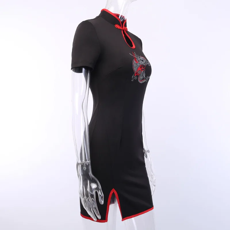 Тёмно-черное ретро-платье Чонсам с вышивкой дракона в стиле Харадзю...
