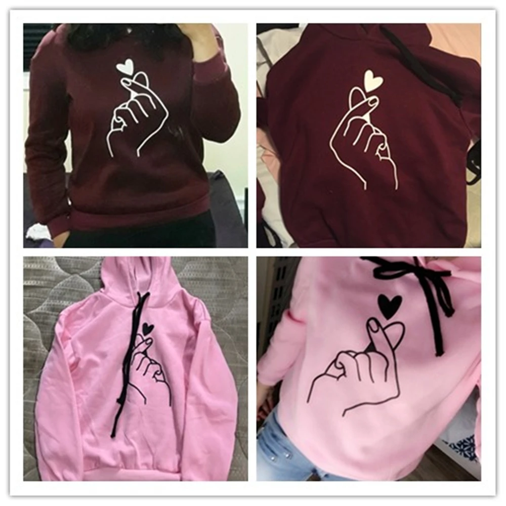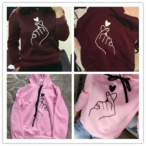 Женская толстовка с капюшоном, топы, Kpop, Finger Heart Love, с рис...