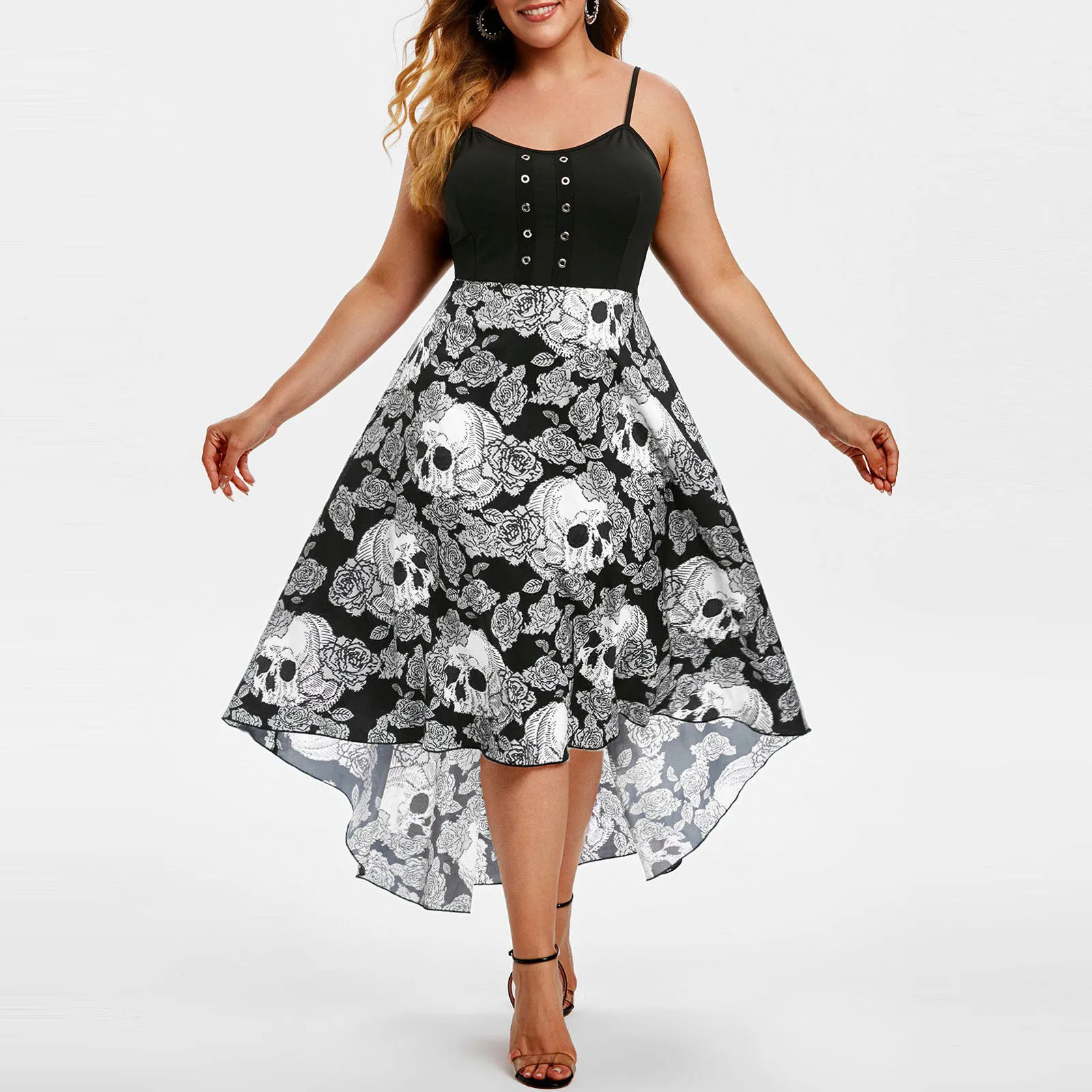 Женское винтажное облегающее платье без рукавов с люверсами, цветочным принтом и черепом, платье до колен, платье с высокой размера плюс, 40 #