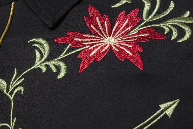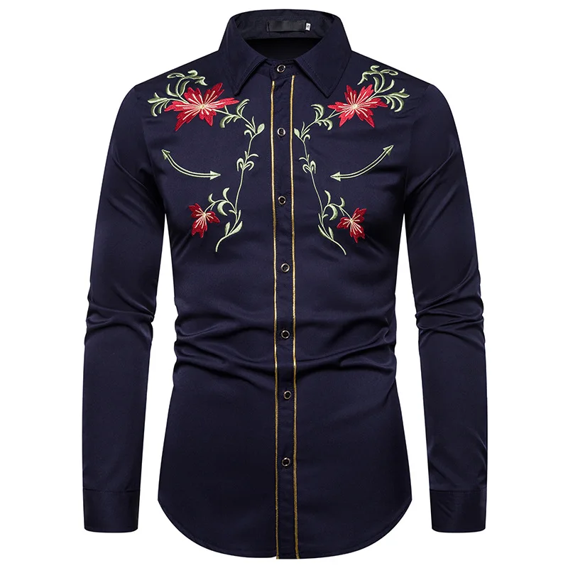 Мужская приталенная рубашка с длинным рукавом, голубая ковбойская рубашка с цветочной вышивкой, размеры до XXL, лето 2021