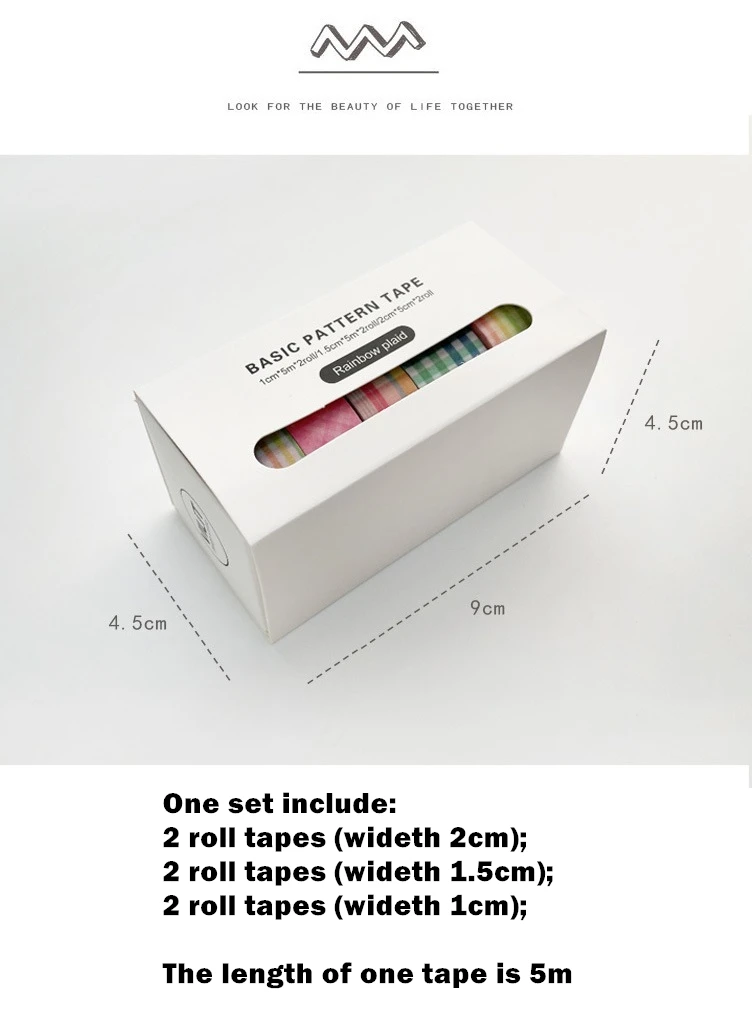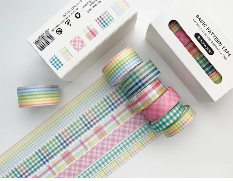 6 шт. основных карт Узор Набор декоративного скотча Васи в радужную клетку полоса текстура 20 мм 15 мм клейкая изоляционная лента для художественного оформления Стикеры для художественного оформления A6019